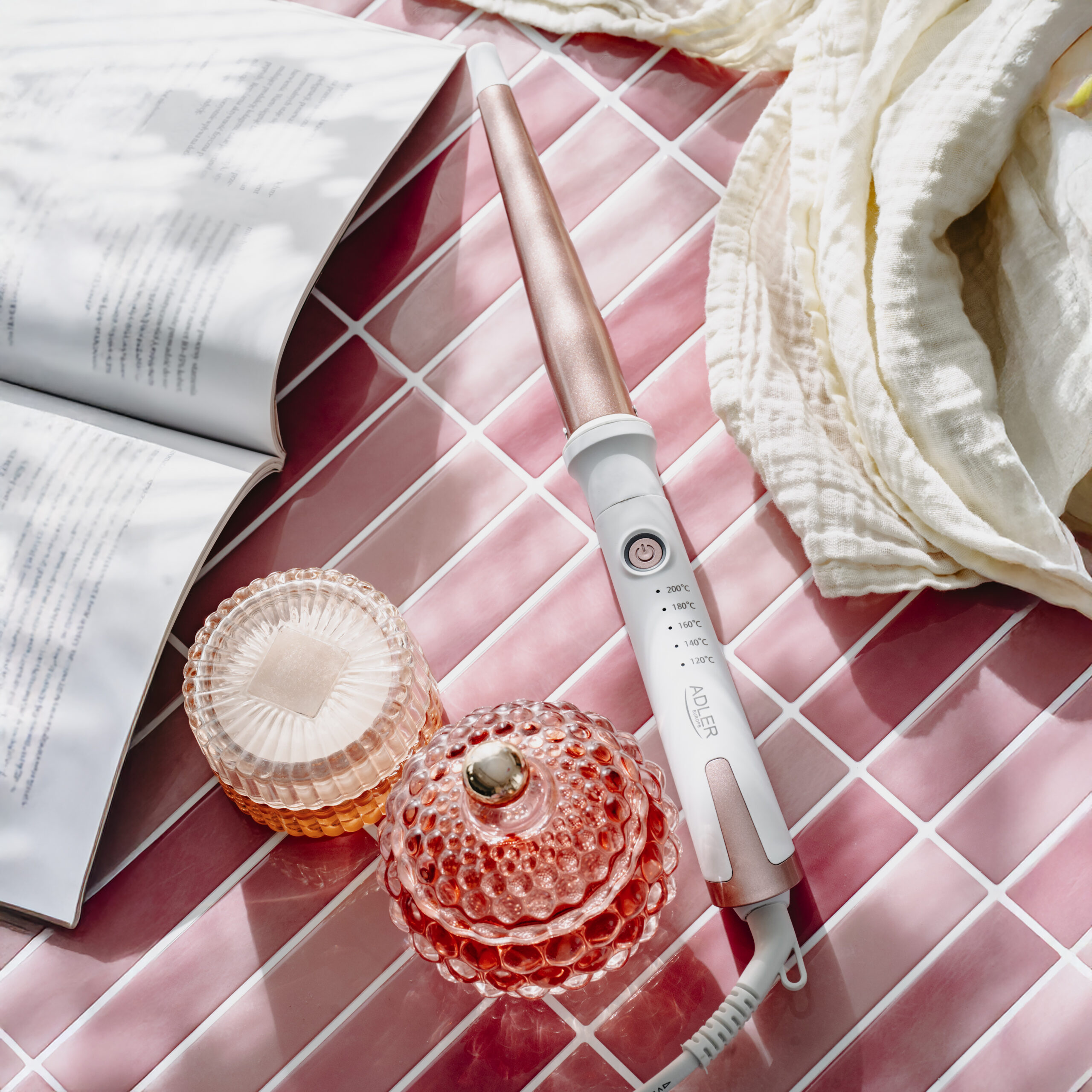 Adler Conical curling iron | AD 2119 | Barrel diameter 12-25 mm | Temperature (min) 120 °C | Temperature (max) 200 °C | Number of heating levels 5 | 45 W | White/Pink