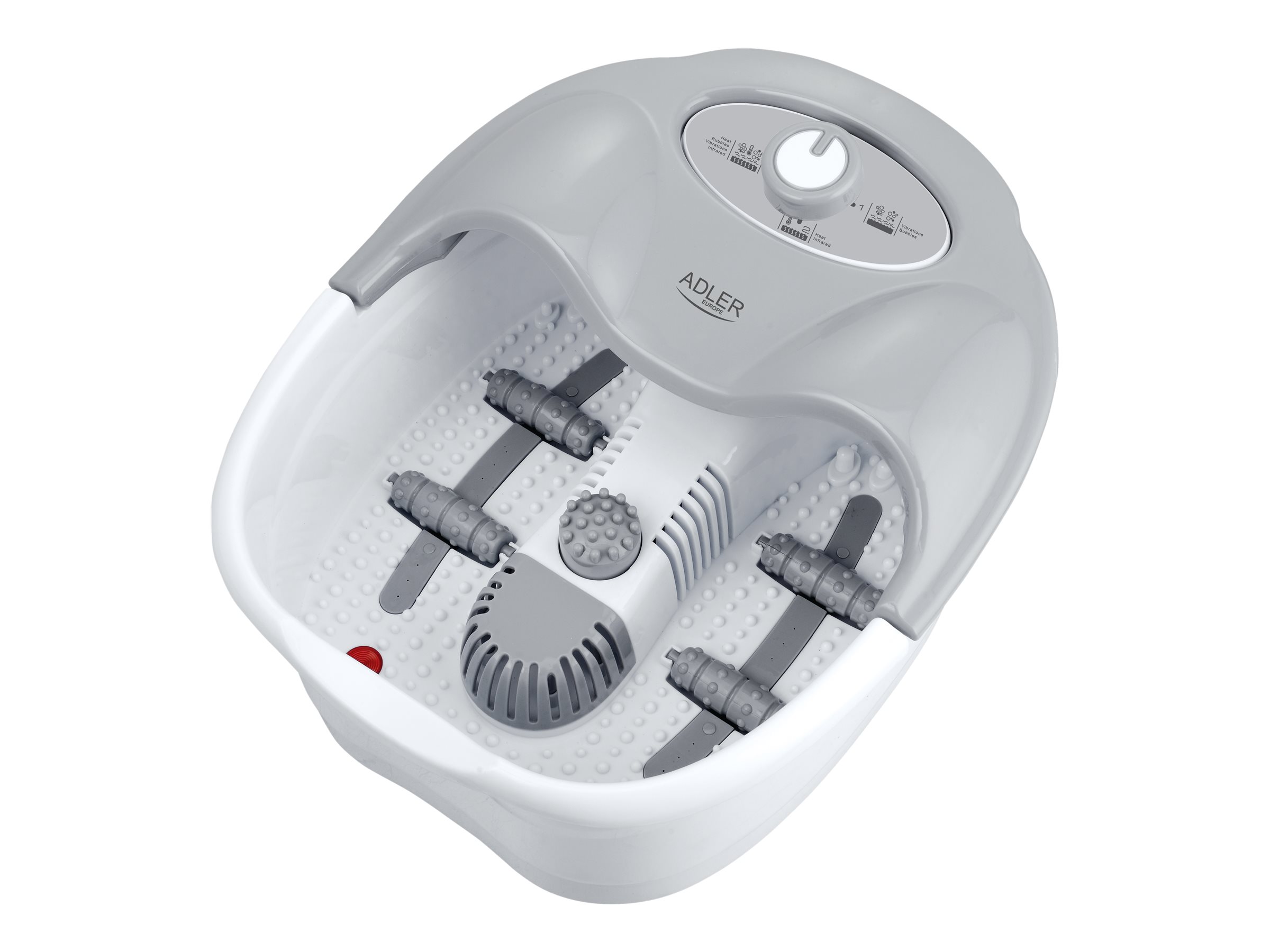| Specialios funkcijos | Bubble, vibration and dry massage. Infrared area with heat massage feature. 4 rollers to massage foot reflex point. 3 replaceable massage attachments. |