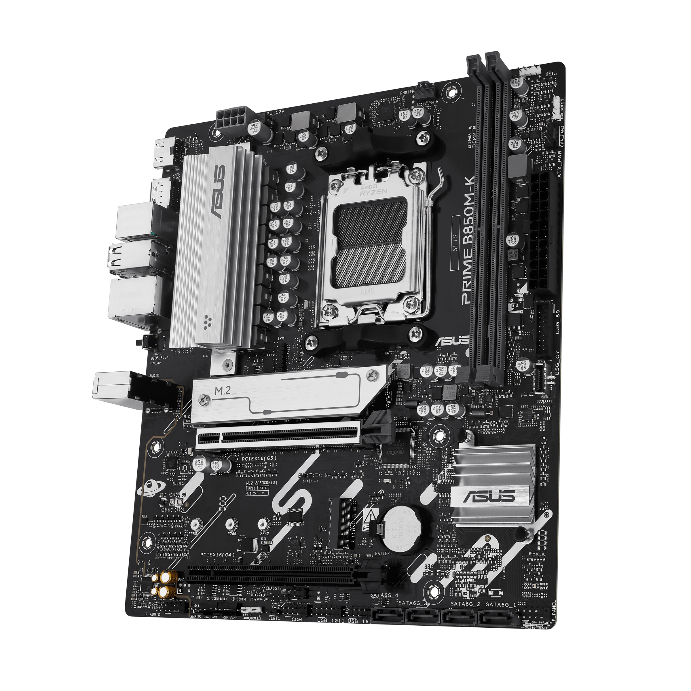 Asus PRIME B850M-K | Processor family AMD | Processor socket AM5 | DDR5 | Supported hard disk drive interfaces SATA, M.2 | Number of SATA connectors 4