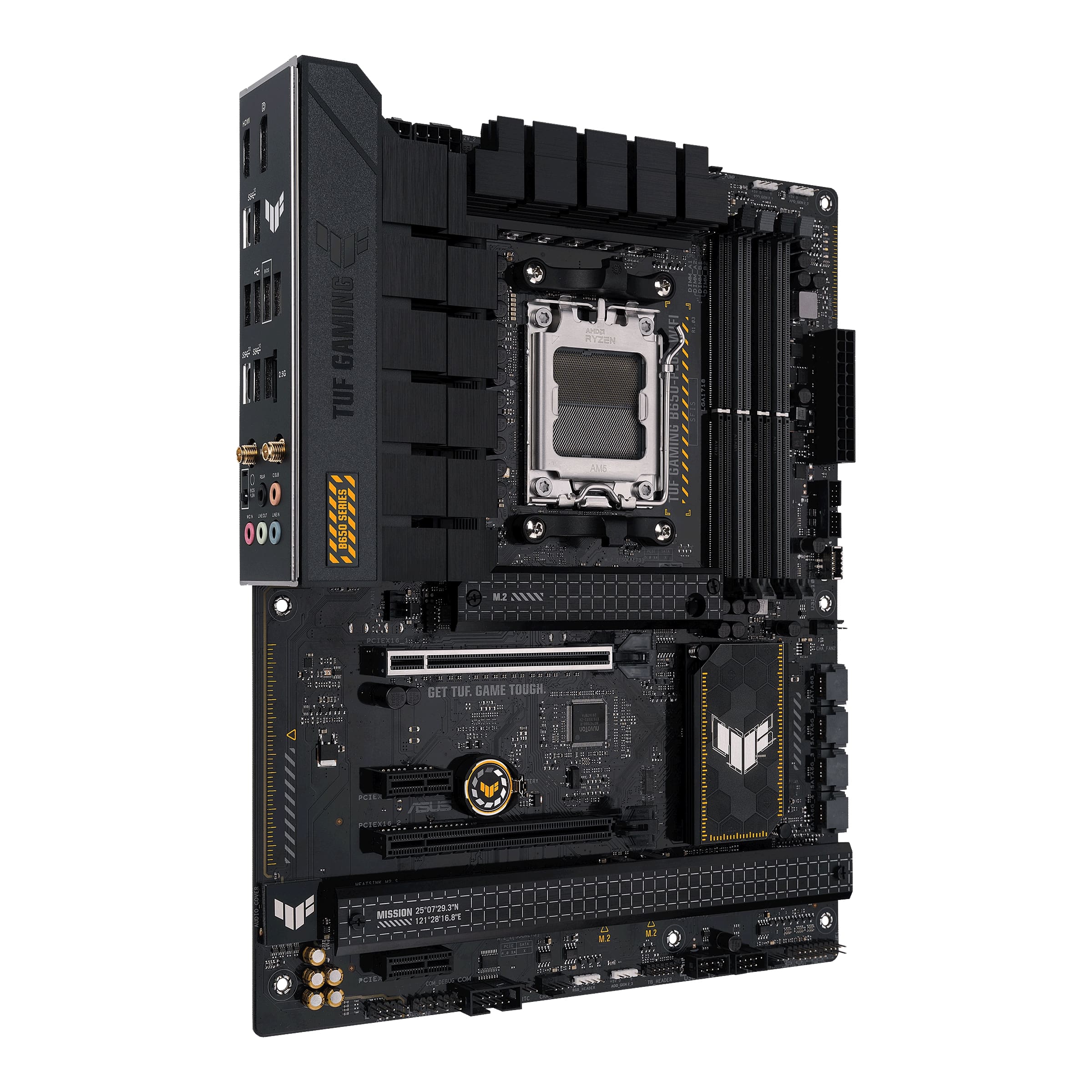 Asus | TUF GAMING B650-PLUS WIFI | Processor family AMD | Processor socket AM5 | DDR5 DIMM | Memory slots 4 | Supported hard disk drive interfaces SATA, M.2 | Number of SATA connectors 4 | Chipset AMD B650 | ATX