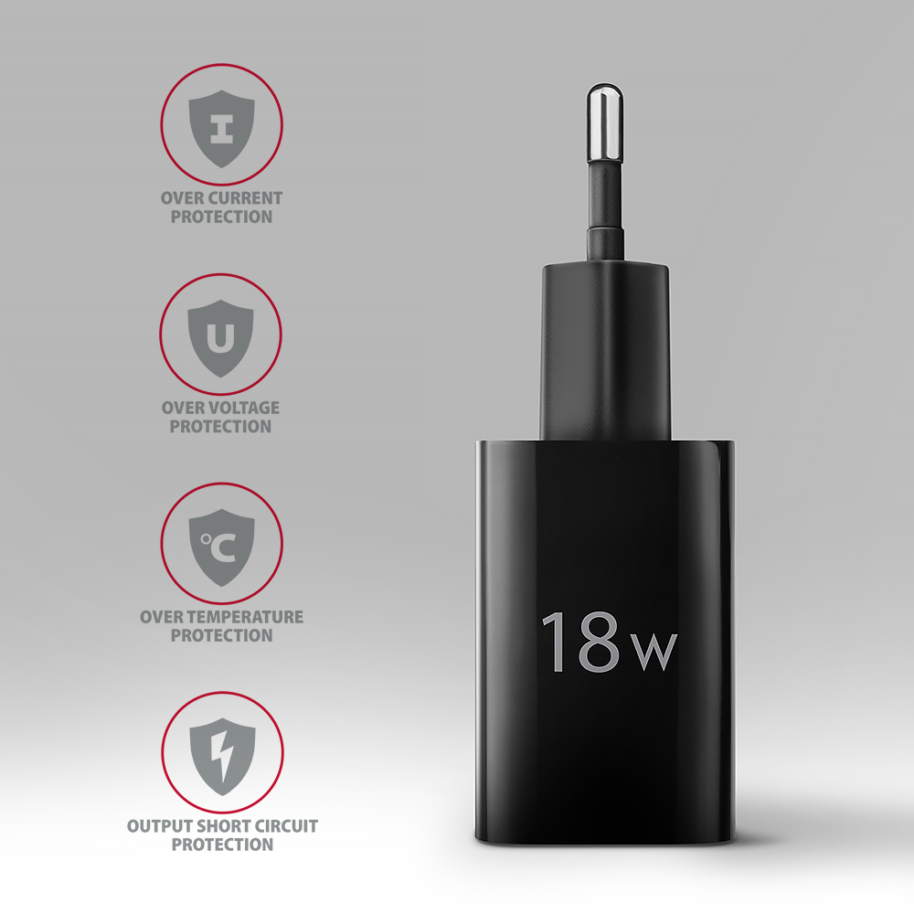 AXAGON Wallcharger 1x port USB-A, QC3.0/AFC/FCP/Apple, 18W | ACU-QC18