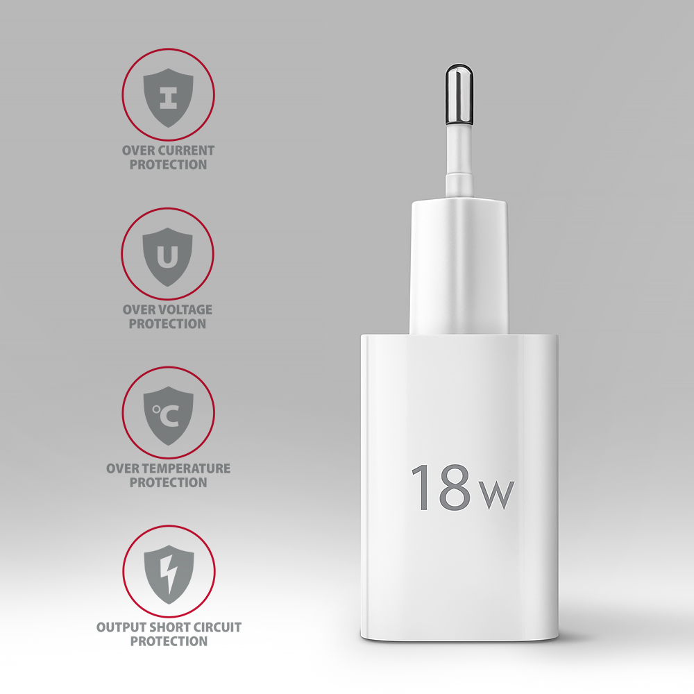 | Gamintojo prekės serija | Wallcharger 1x port USB-A, QC3.0/AFC/FCP/Apple, 18W |