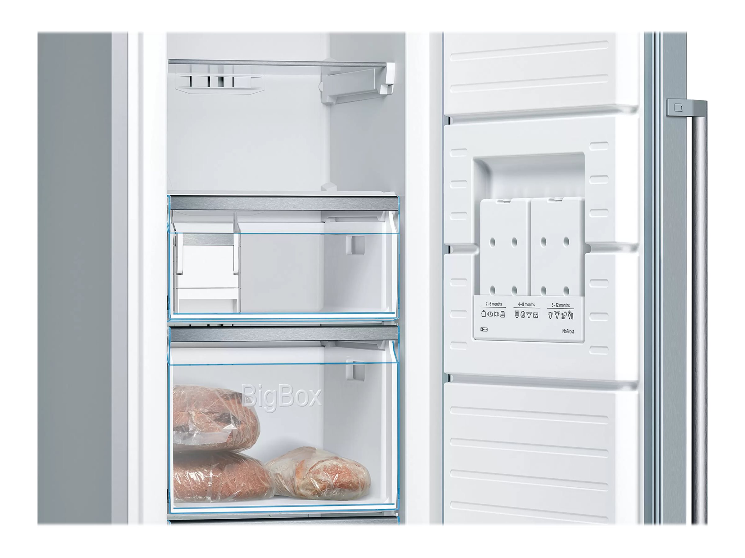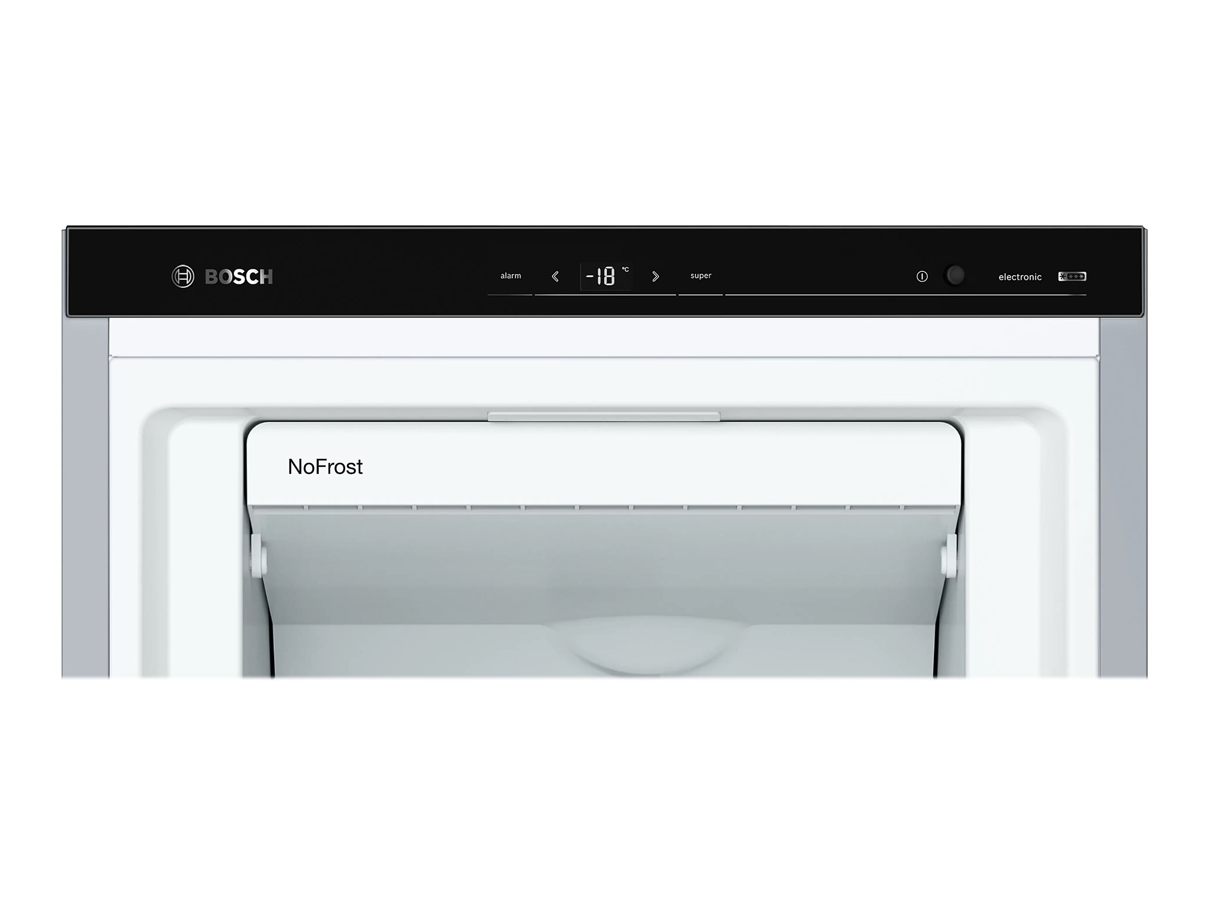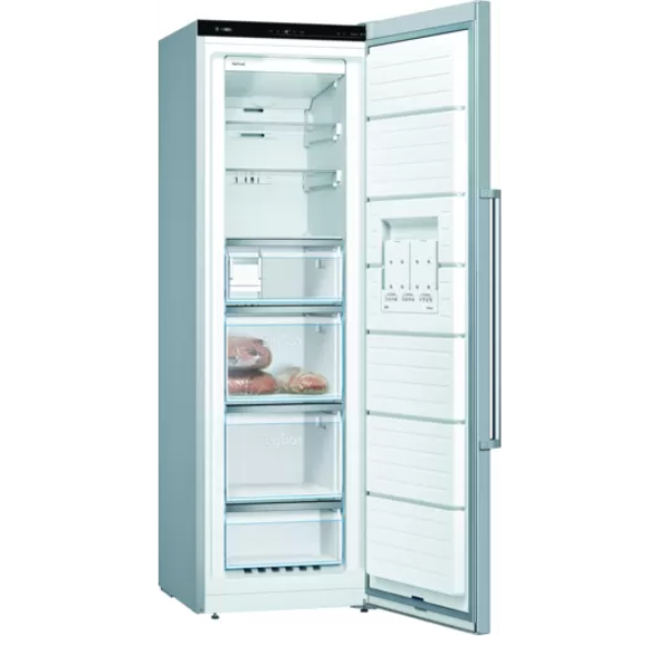 Bosch | Šaldiklis | GSN36AIDP | Energijos vartojimo efektyvumo klasė D | Vertikalus | Laisvai pastatomas | Aukštis 186 cm | Bendra grynoji talpa 242 l | Sistema „No Frost“ | Nerūdijantis plienas