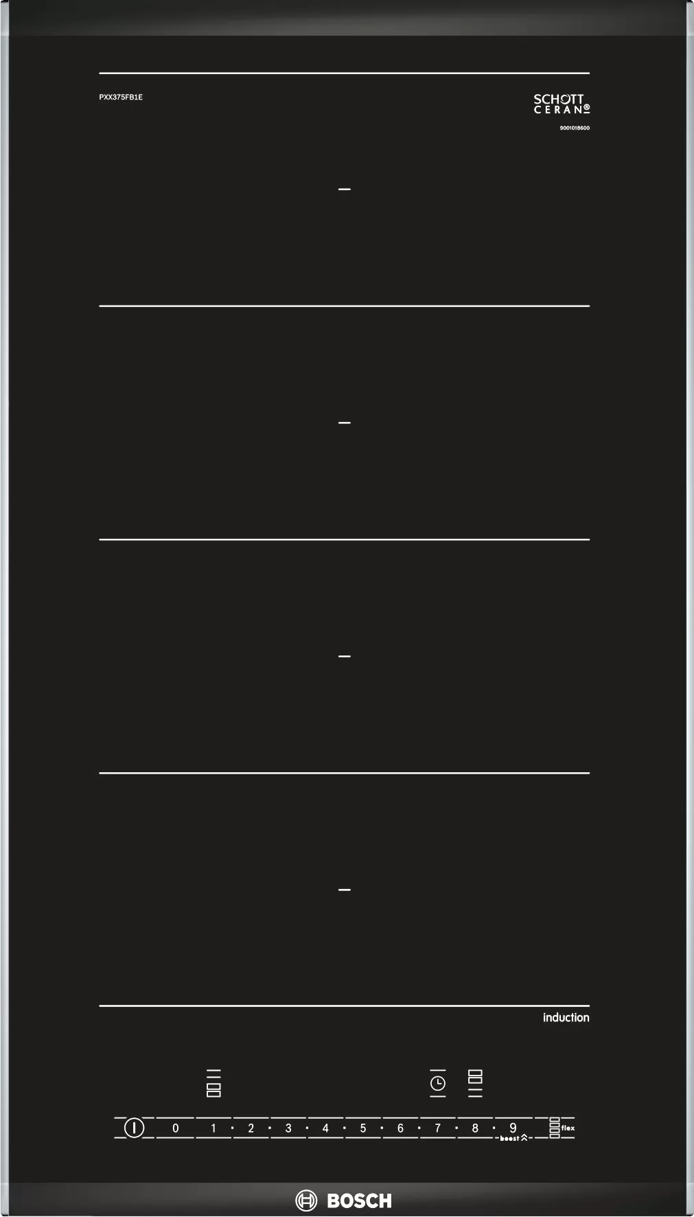Bosch | Hob | PXX375FB1E | Induction | Number of burners/cooking zones 2 | Touch | Timer | Black