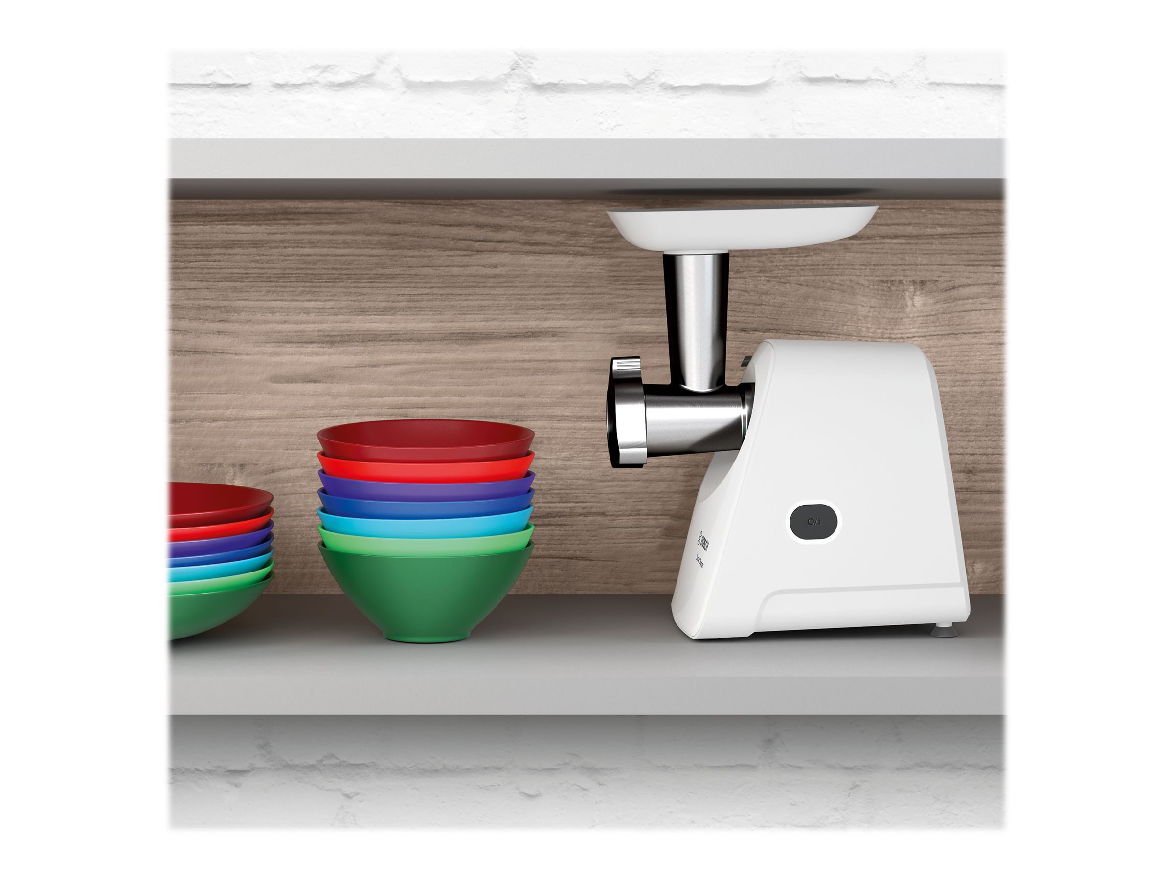 Bosch | Mėsmalė SmartPower | MFW2510W | Balta | 350 W | Greičių skaičius: 1 | 2; Diskai: 3,8 ir 8 mm; Dešrų kimštuvo priedas.