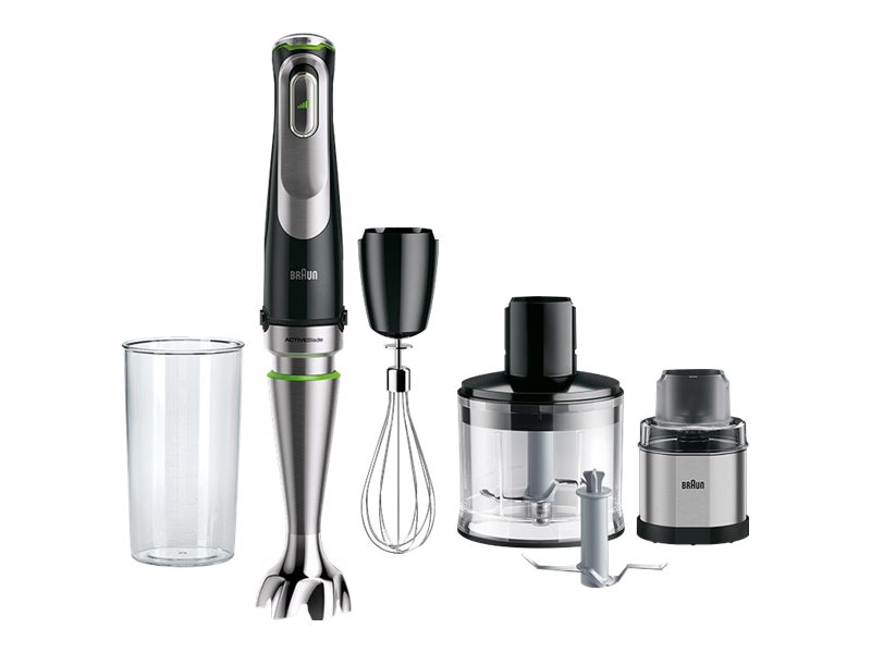 | Kitos savybės | ActiveBlade Technology: flexible shaft for finer blending results; Speed regulation: Intuitive, seamless Advanced SmartSpeed button; PowerBell Plus Technology: SplashControl + extra milling blade for efficent blending results; EasyClick system: quick & easy change of accessories |