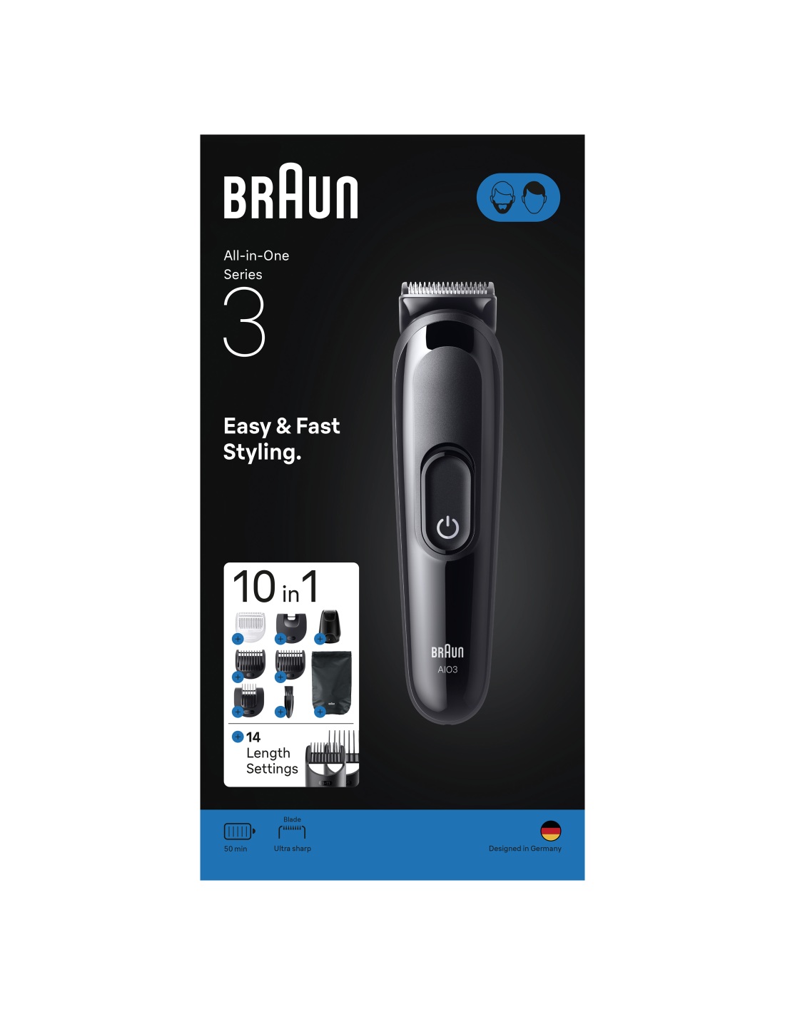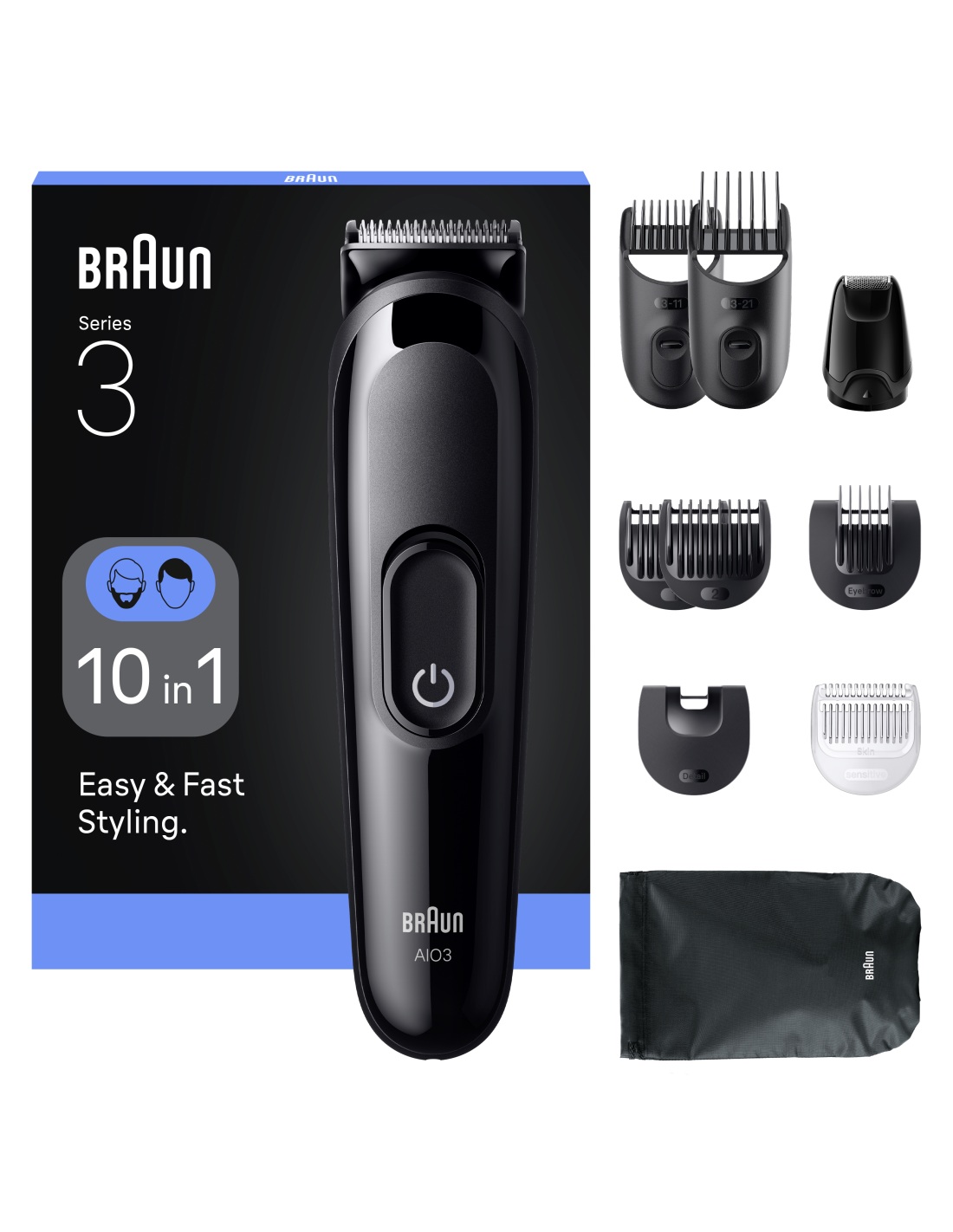 Braun 10in1 Hair Clipper Set | All-in-One Series 3 AIO3560 | Cordless | Number of length steps 14 | Black