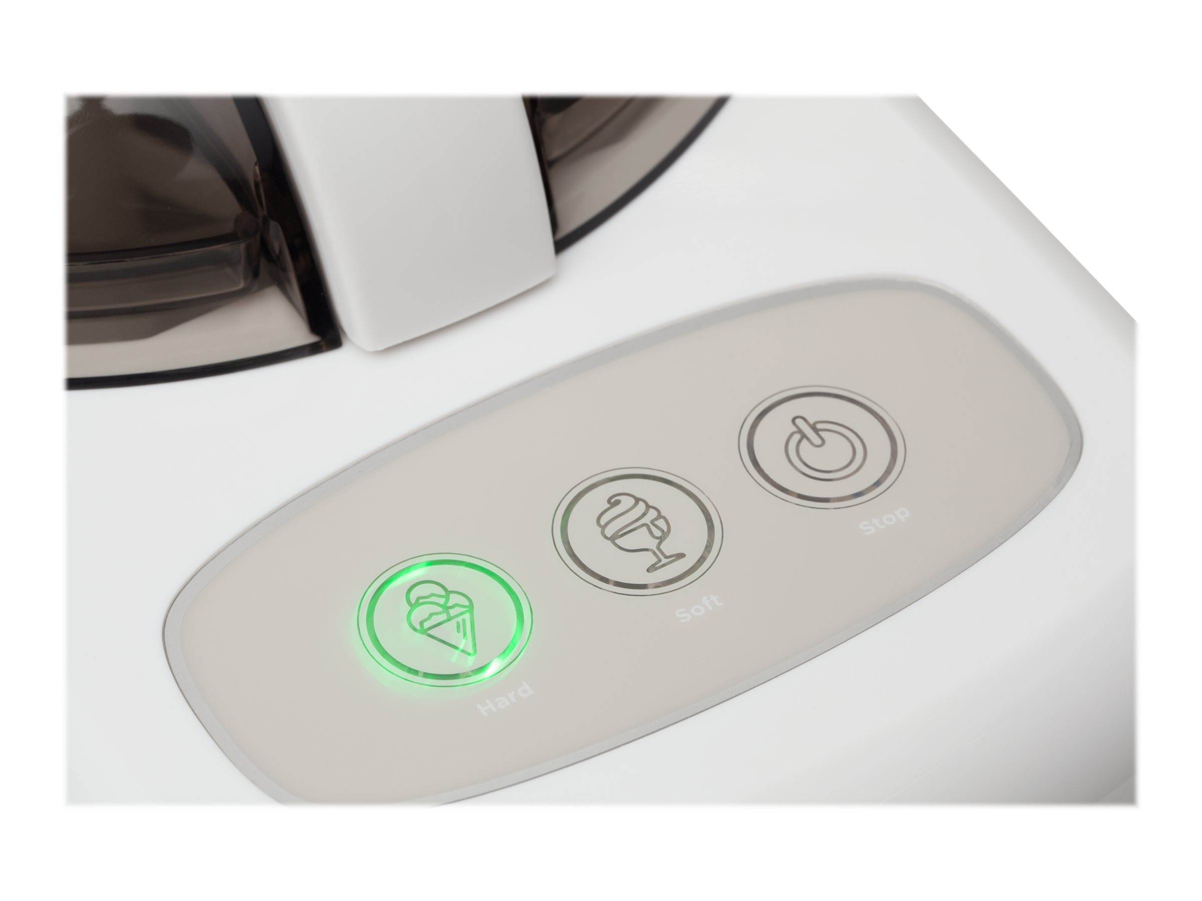 | Kitos savybės | Ice creams ready by one touch. Ready even in 30 minutes. Ideal for ice-creams, sorbets and frozen yougurt. 2 levels of freezing available. Easy to clean, non-stick container. Thermoelectrical - no need of precooling of products. Additional accessories: measuring cup, scoop and spatula. |