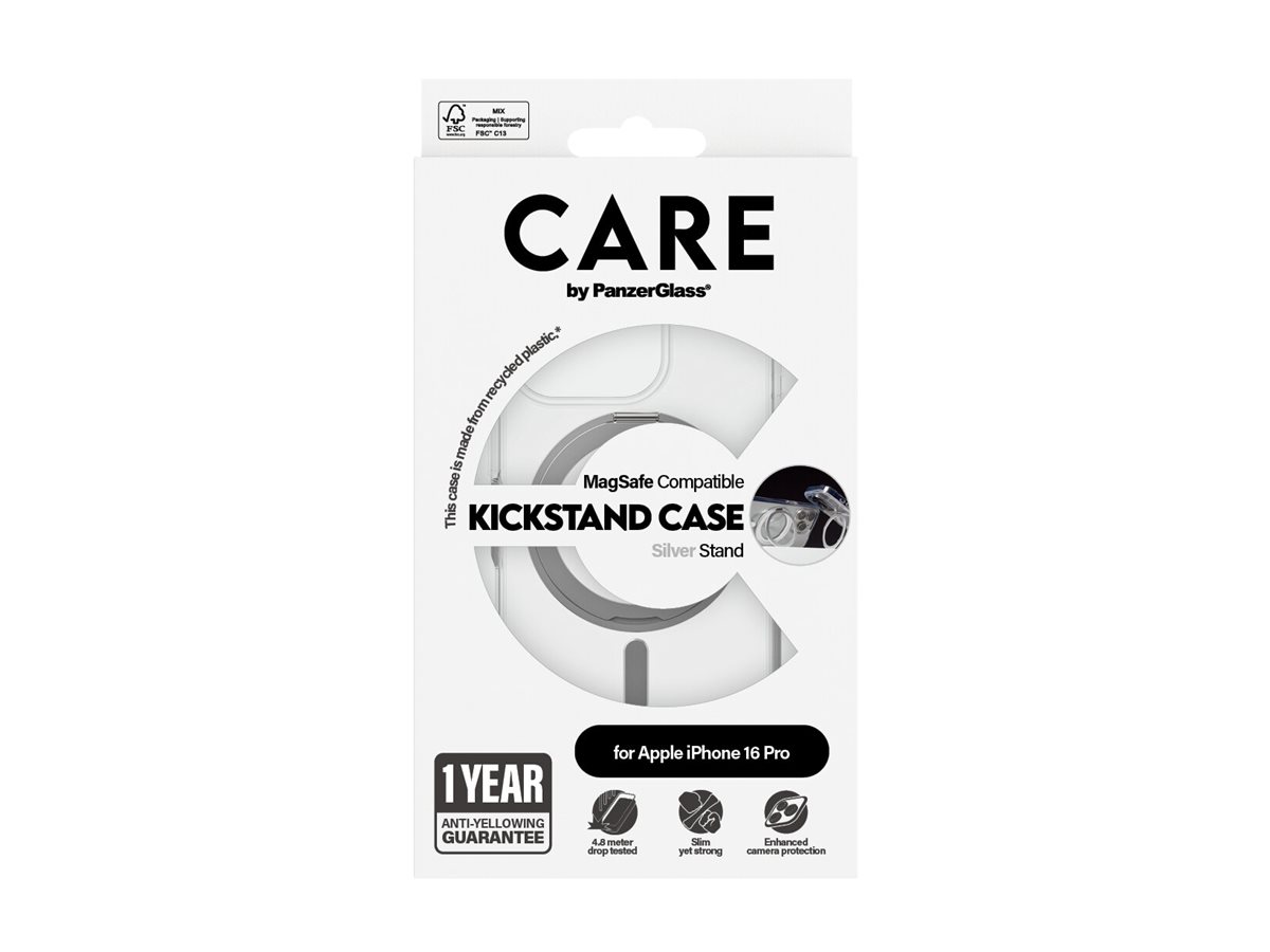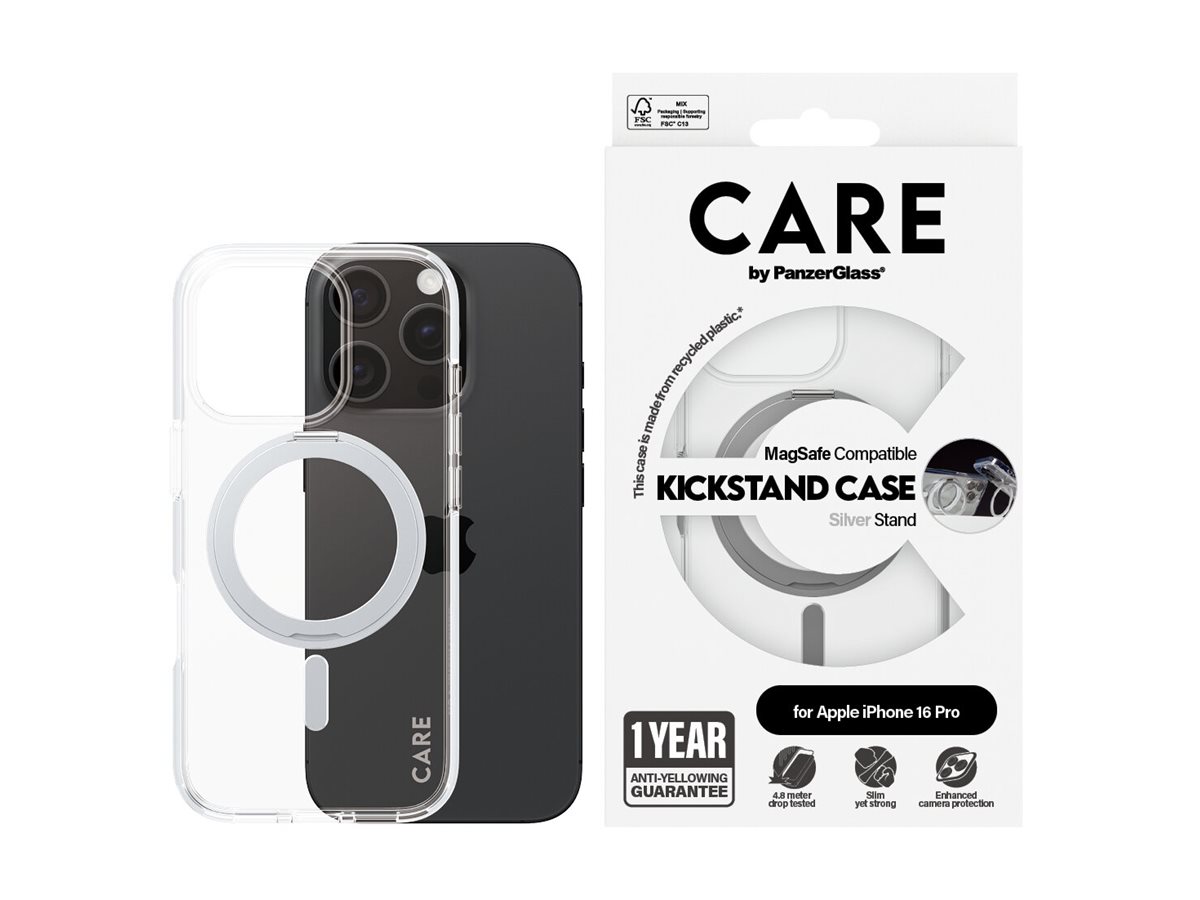 CARE Feature Case | Back cover | Apple | iPhone 16 PRO | Recycled plastic | Silver | Kickstand & MagSafe