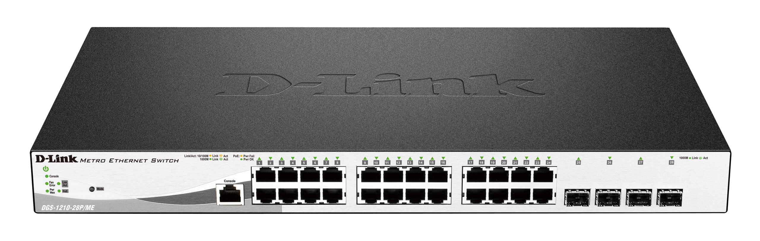 D-Link | Metro Ethernet Switch | DGS-1210-28P/ME | Managed L2 | Rack mountable | Gigabit Ethernet (copper) ports quantity 24 | SFP ports quantity 4 | Power over Ethernet (PoE) ports quantity 20 | PoE/Poe+ ports quantity 4 | Power supply type Single | 24 month(s)