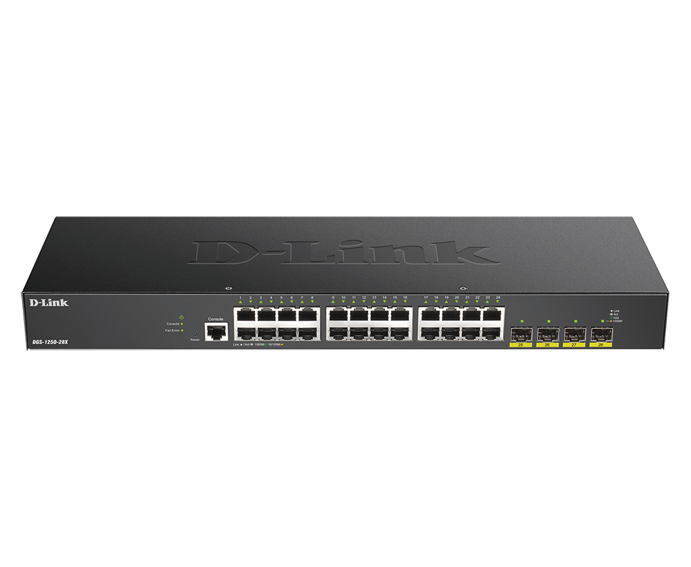 D-Link | Stackable Smart Managed Switch with 10G Uplinks | DGS-1250-28X/E | Web managed | Rackmountable | Gigabit Ethernet (copper) ports quantity 24