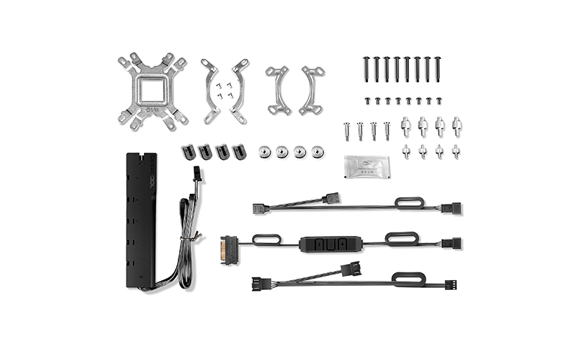 | Kitos savybės | LED Type: Addressable RGB LED; LED Connector: 3-pin(+5V-D-G); LED Rated Voltage: 5 VDC; LED Power Consumption: 2.25 W(PUMP) / / 4.4 W(FAN×2 |