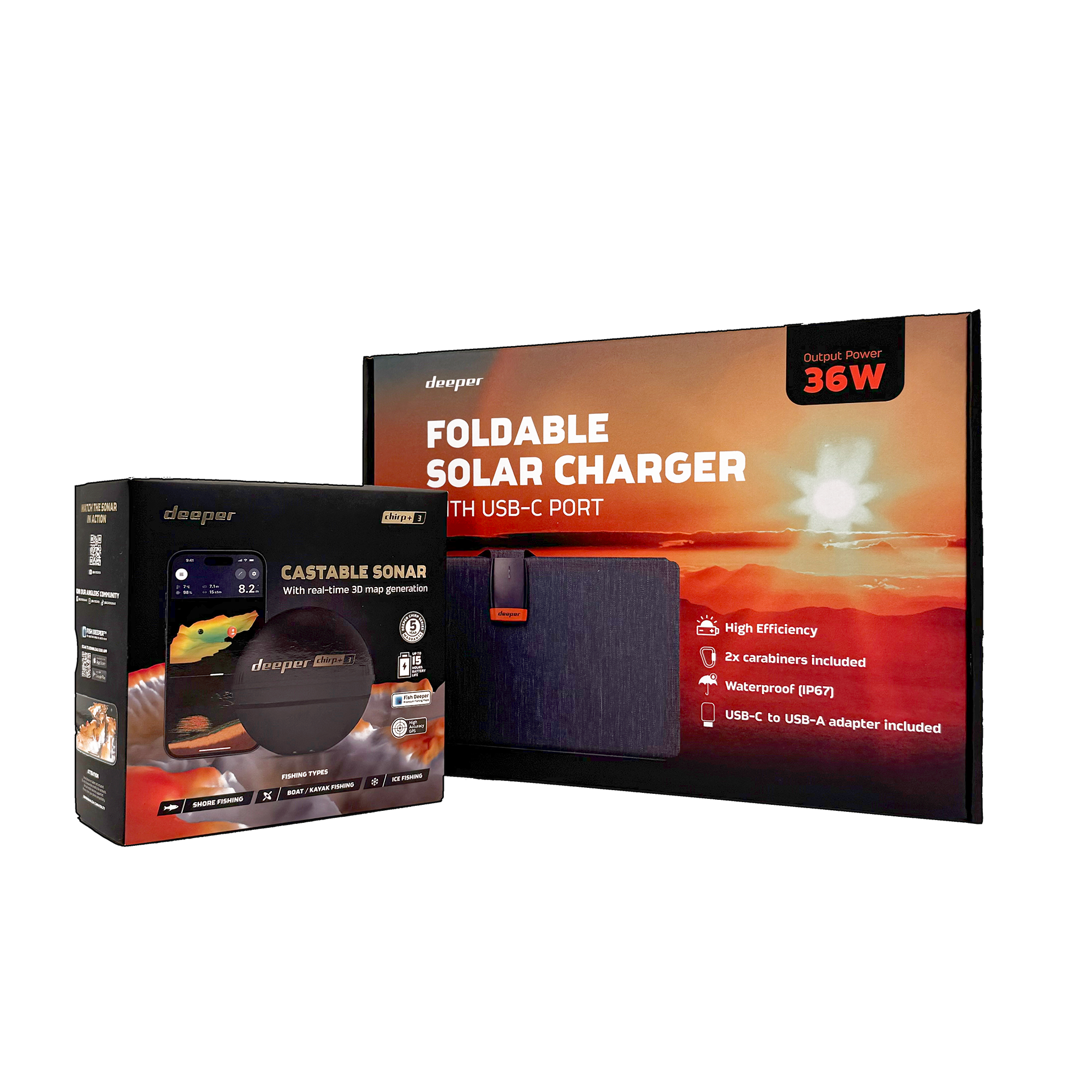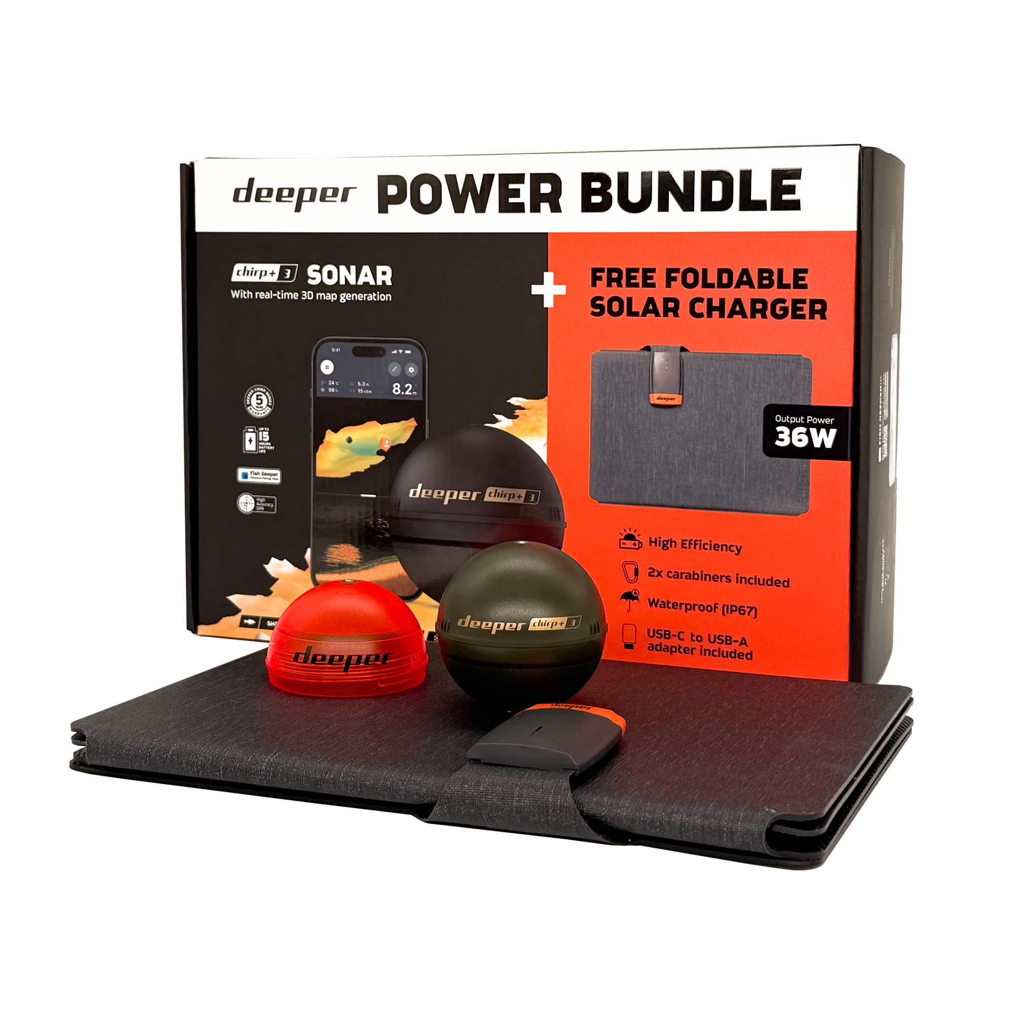Deeper CHIRP+3 sonar +36W foldable solar charger power bundle