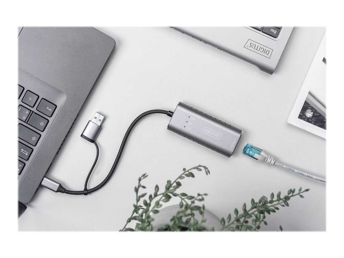 Digitus | USB Type-C Gigabit Ethernet Adapter 2.5G, USB-C + USB A (USB3.1/3.0) | DN-3028 | USB3.0/USB C 3.1 to 2.5G Ethernet Adapter