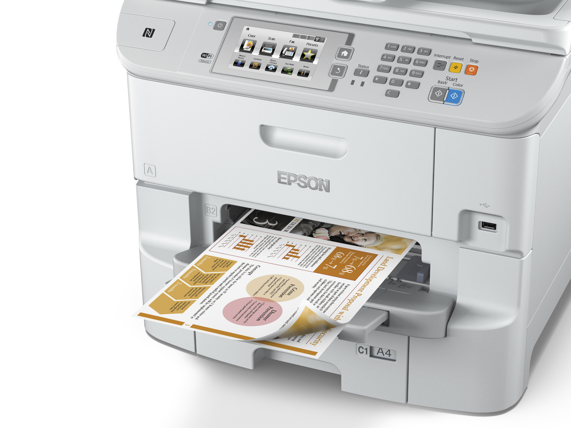 | Mobiliojo spausdinimo technologijos | Epson Connect (iPrint, Email Print, Remote Print Driver, Scan-to-Cloud), Apple AirPrint, Google Cloud Print |