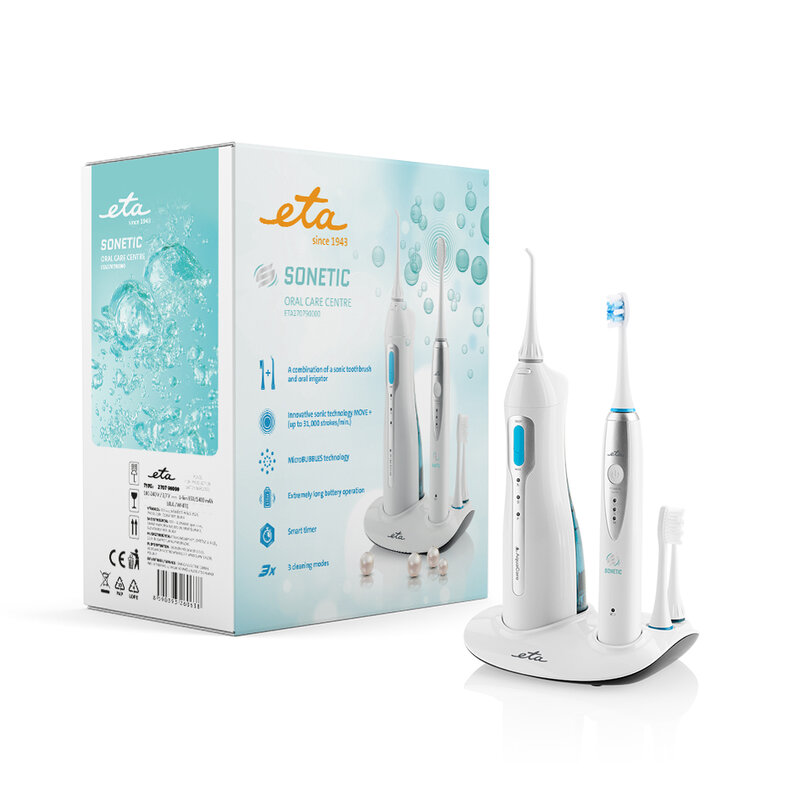 ETA | Oral care centre (sonic toothbrush+oral irrigator) | ETA 2707 90000 | Rechargeable | For adults | Number of brush heads included 3 | Number of teeth brushing modes 3 | Sonic technology | White