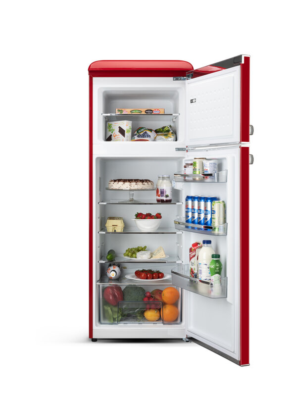 ETA | šaldytuvas | ETA253490030E Storio retro | Energy efficiency class E | Free standing | Double Door | Height 148.2 cm | Fridge net capacity 170 L | Freezer net capacity 45 L | 44 dB | Red