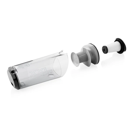 | Specialios funkcijos | CLICK & CLEAN technology; Practical LED lighting of the vacuumed area; Cyclone filtration system + high quality HEPA filter captures even the smallest microparticles; 3 types mopping fabrics made of microfibre (machine washable): ALL FLOOR PAD - universal mopping fabric for general cleaning, FINE PAD - mopping fabric for gentle cleaning of sensitive floors, EFFECTIVE PAD - mopping fabric for coarse dirt |