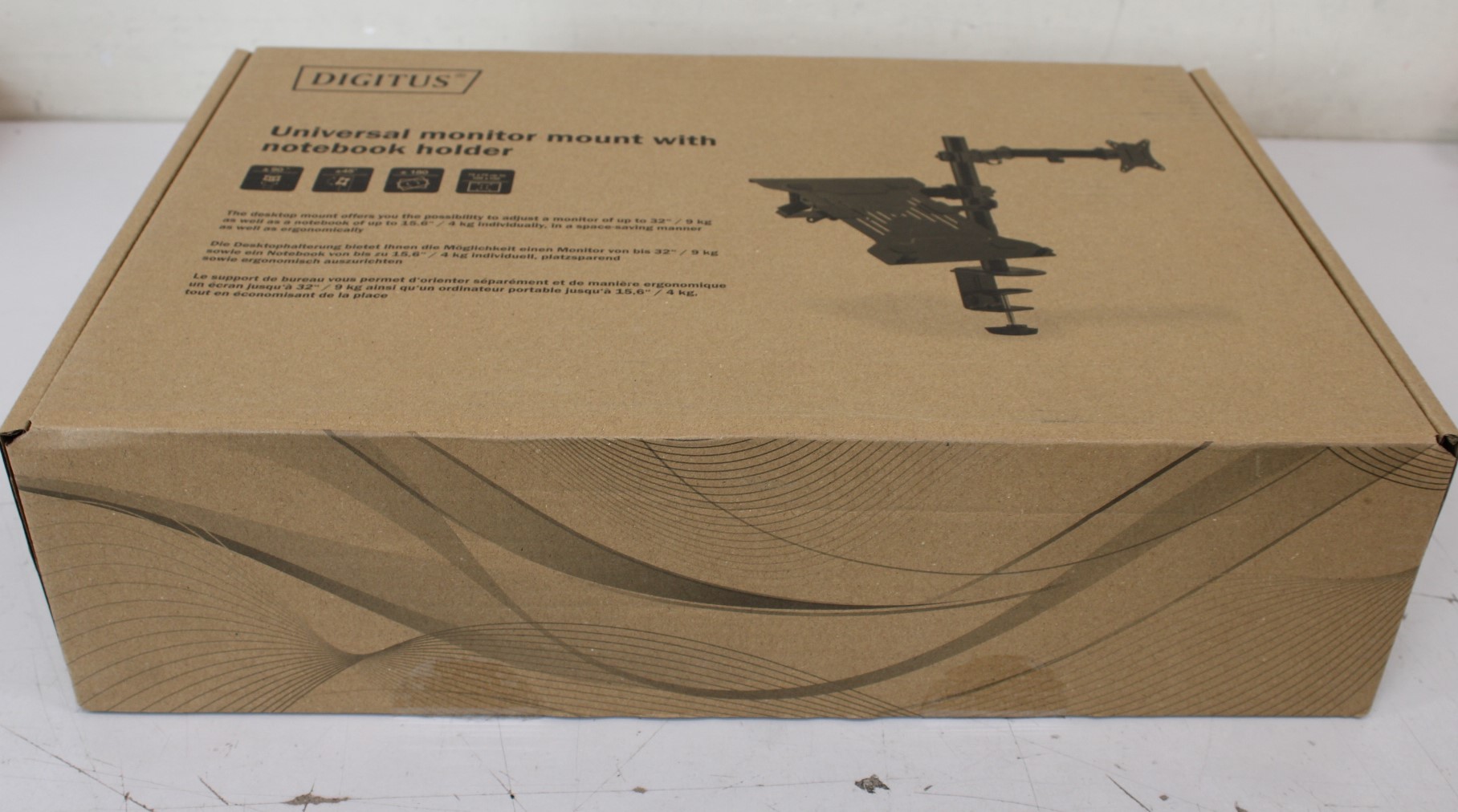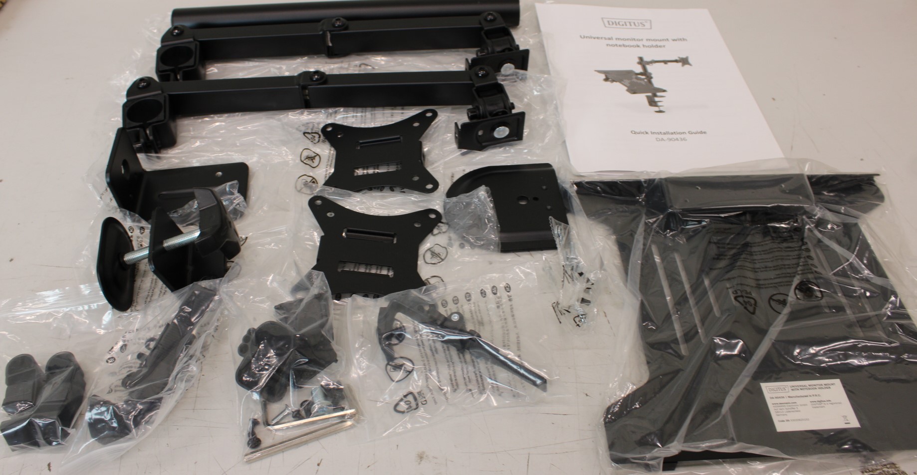 IŠPARDAVIMAS. DIGITUS Universal Monitor Mount with Notebook Holder | IŠPARDAVIMAS. Digitus Desk Mount | DA-90436 | Tilt, swivel, height adjustment, rotate | Maximum weight (capacity) 9 kg | UNPACKED, SCRATCHED ON TUBE | Black