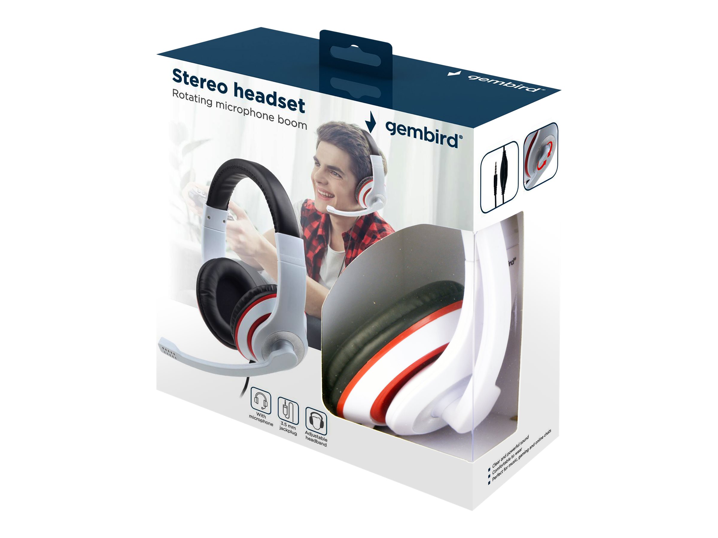 Gembird | Stereo Headset | MHS 03 WTRDBK | 3.5 mm | White and Black Color with Red Ring | Headset