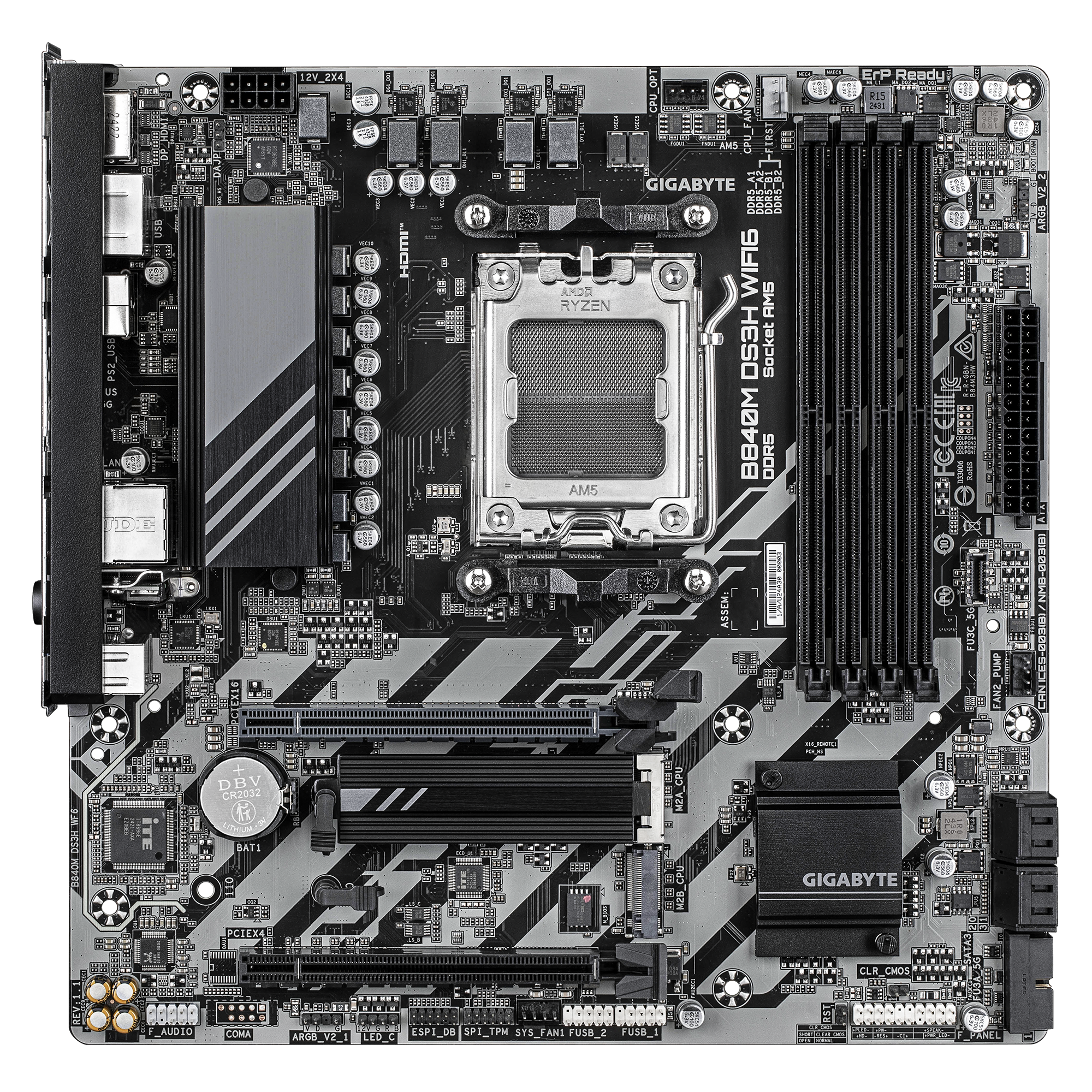 Gigabyte B840M DS3H WIFI6 (rev. 1.1) | Processor family AMD | Processor socket AM5 | DDR5 | Supported hard disk drive interfaces SATA, M.2 | Number of SATA connectors 4
