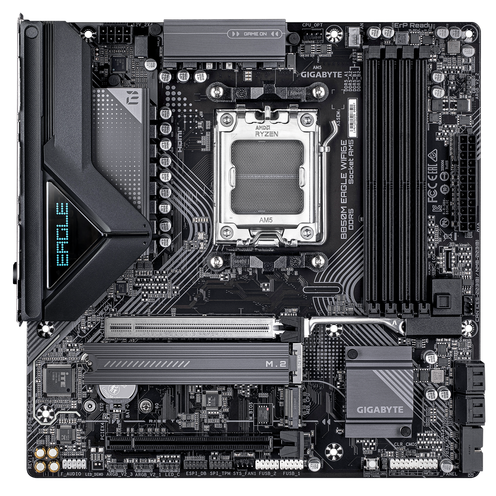 Gigabyte B850M EAGLE WF6E | Processor family AMD | Processor socket AM5 | DDR5 | Supported hard disk drive interfaces SATA, M.2 | Number of SATA connectors 4
