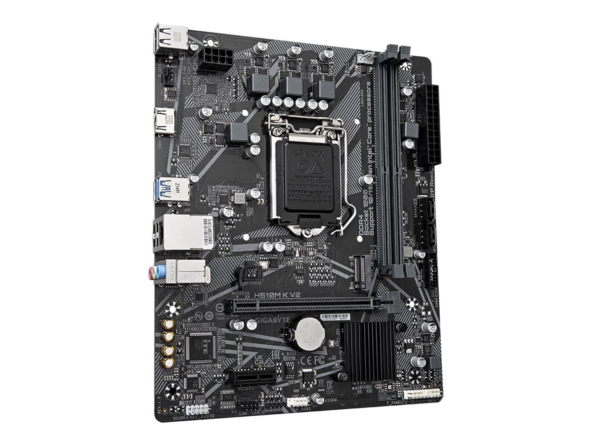 Gigabyte | H510M K V2 1.0 M/B | Processor family Intel | Processor socket LGA1200 | DDR4 DIMM | Memory slots 2 | Supported hard disk drive interfaces SATA, M.2 | Number of SATA connectors 2 | Chipset Intel H470 Express | Micro ATX