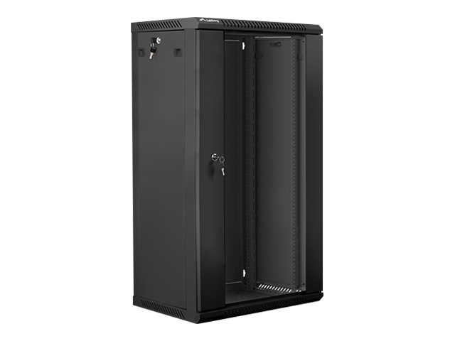Lanberg | Rack cabinet 19″ wall-mount 22U/600×450 (flat pack) with glass door | WF01-6422-10B | Black