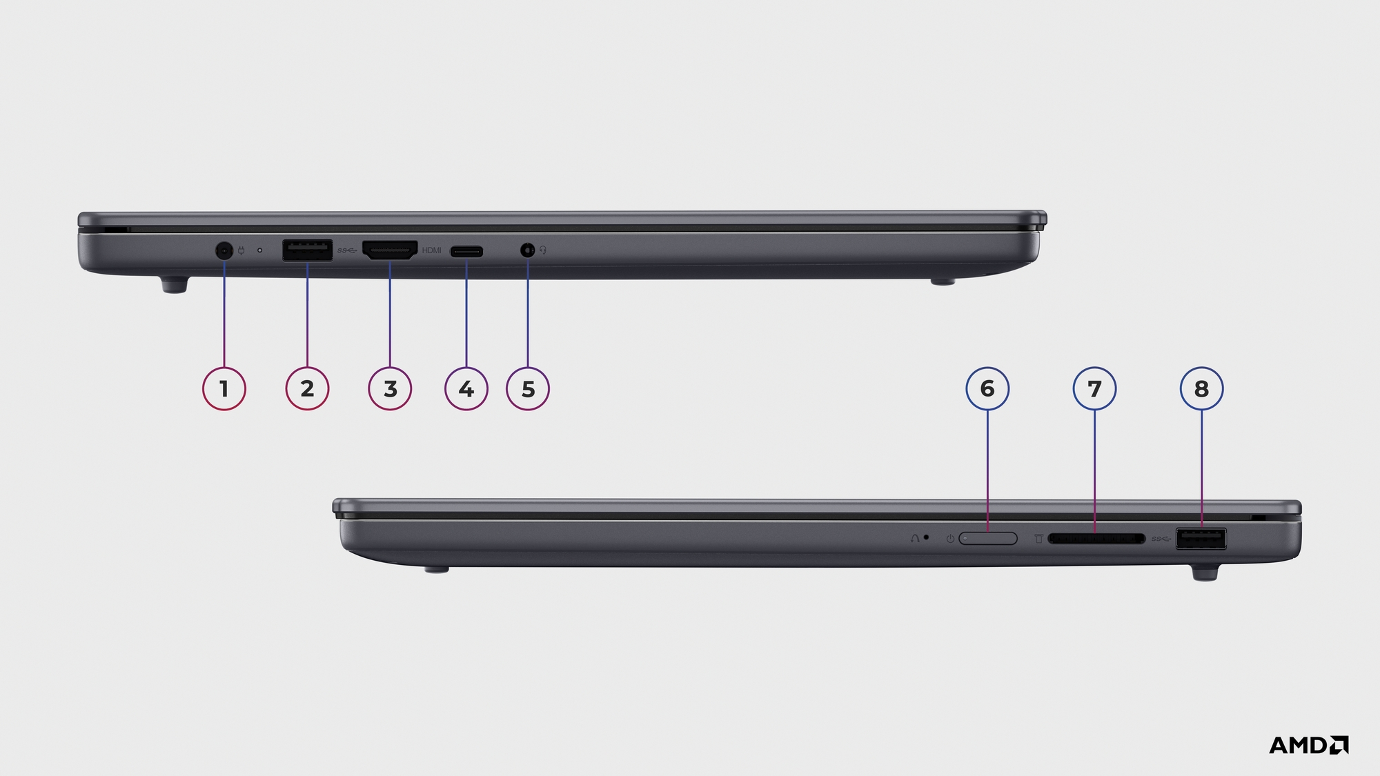 | Kitos savybės | 2x USB-A (USB 5Gbps/USB 3.2 Gen 1); 1x USB-C (USB 5Gbps/USB 3.2 Gen 1), with USB PD 3.0 and DisplayPort 1.2; 1x Headphone/microphone combo jack (3.5mm); 1x SD card reader; 1x Power connector |