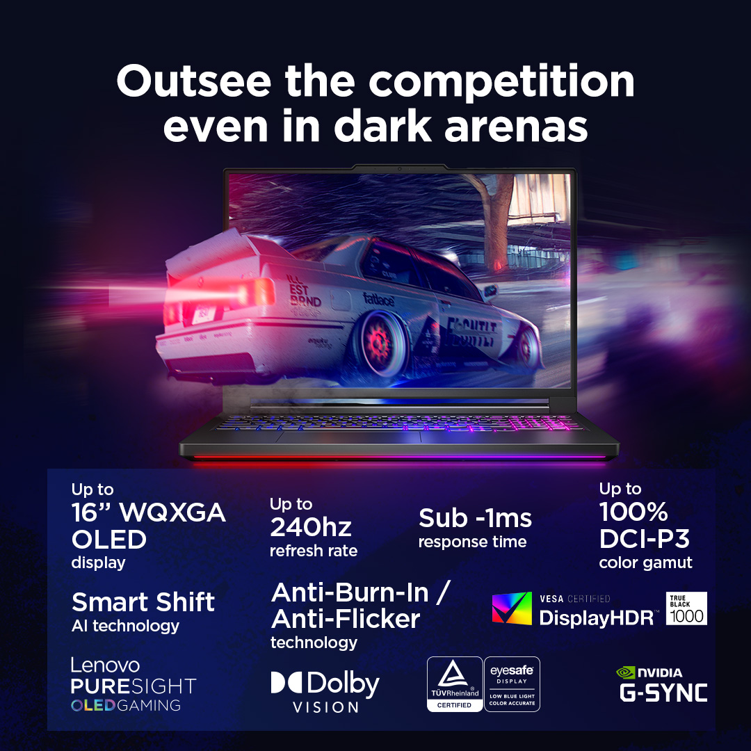 Lenovo Legion Pro 7 16IAX10H | Eclipse Black | 16 ” | OLED | WQXGA | 2560 x 1600 pixels | Intel Core Ultra 9 | 275HX | 32 GB | CSODIMM DDR5 | Solid-state drive capacity 2×1000 GB | NVIDIA GeForce RTX 5080 | GDDR7 | 16 GB | Windows 11 Home | 802.11be | Bluetooth version 5.4 | Keyboard language English | Keyboard backlit | Warranty 24 month(s) | Battery warranty 12 month(s)