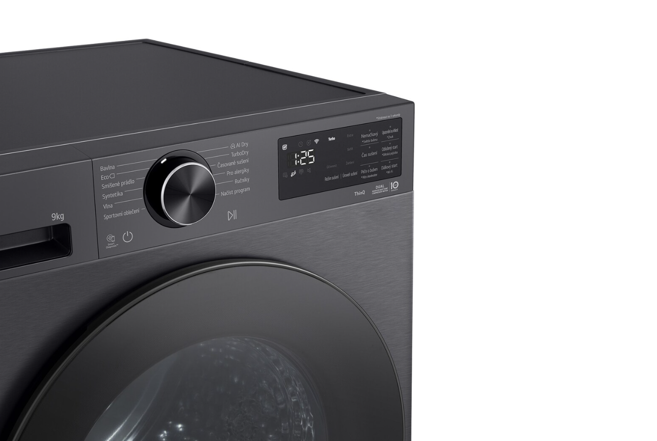 LG Dryer Machine | RHX5009TBB | Energy efficiency class B | Front loading | 9 kg | Heat pump | LED | Depth 66 cm | Wi-Fi | Matte black