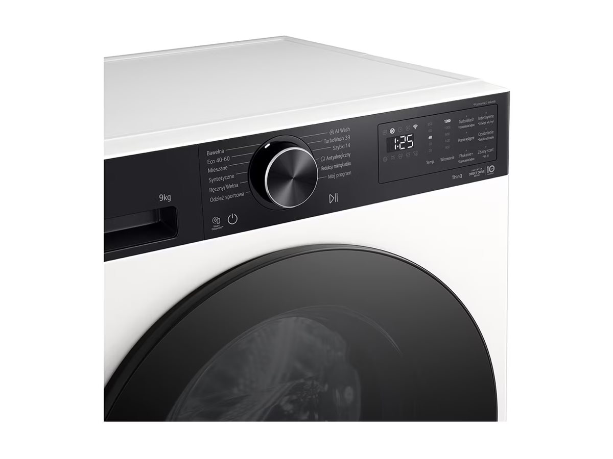 LG Washing machine | F2X50S9THB | Energy efficiency class A | Front loading | Washing capacity 9 kg | 1200 RPM | Depth 48 cm | Width 60 cm | LED | Steam function | Direct drive | Wi-Fi | White