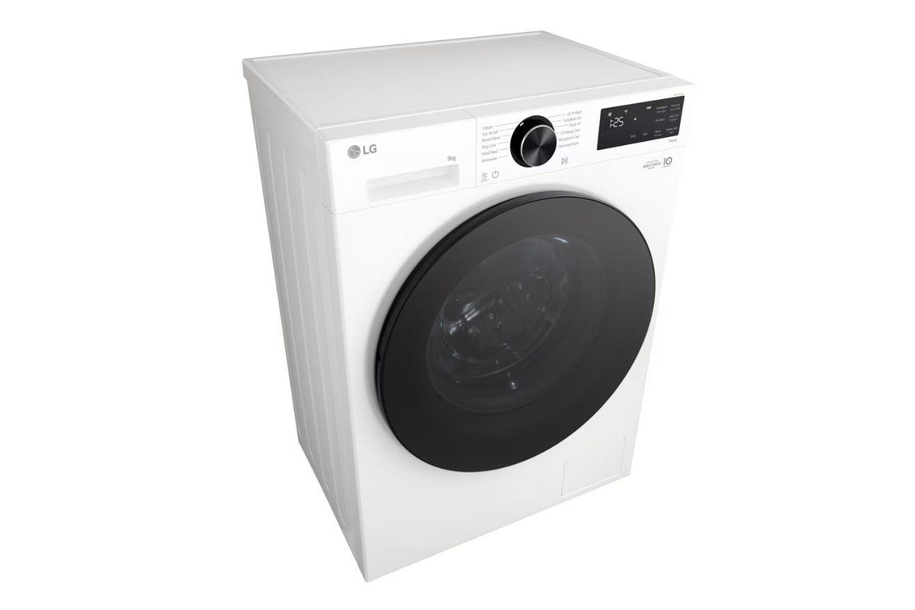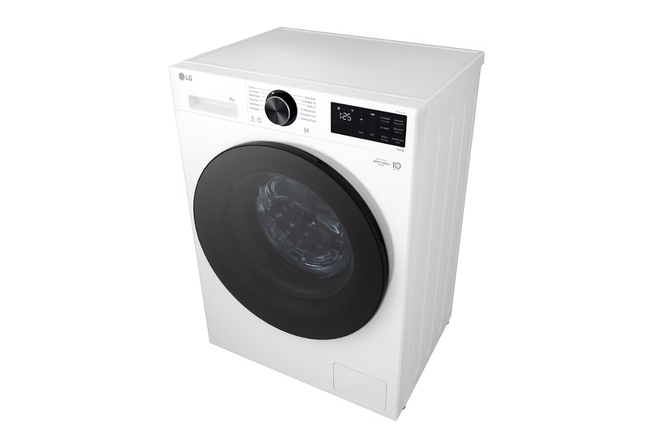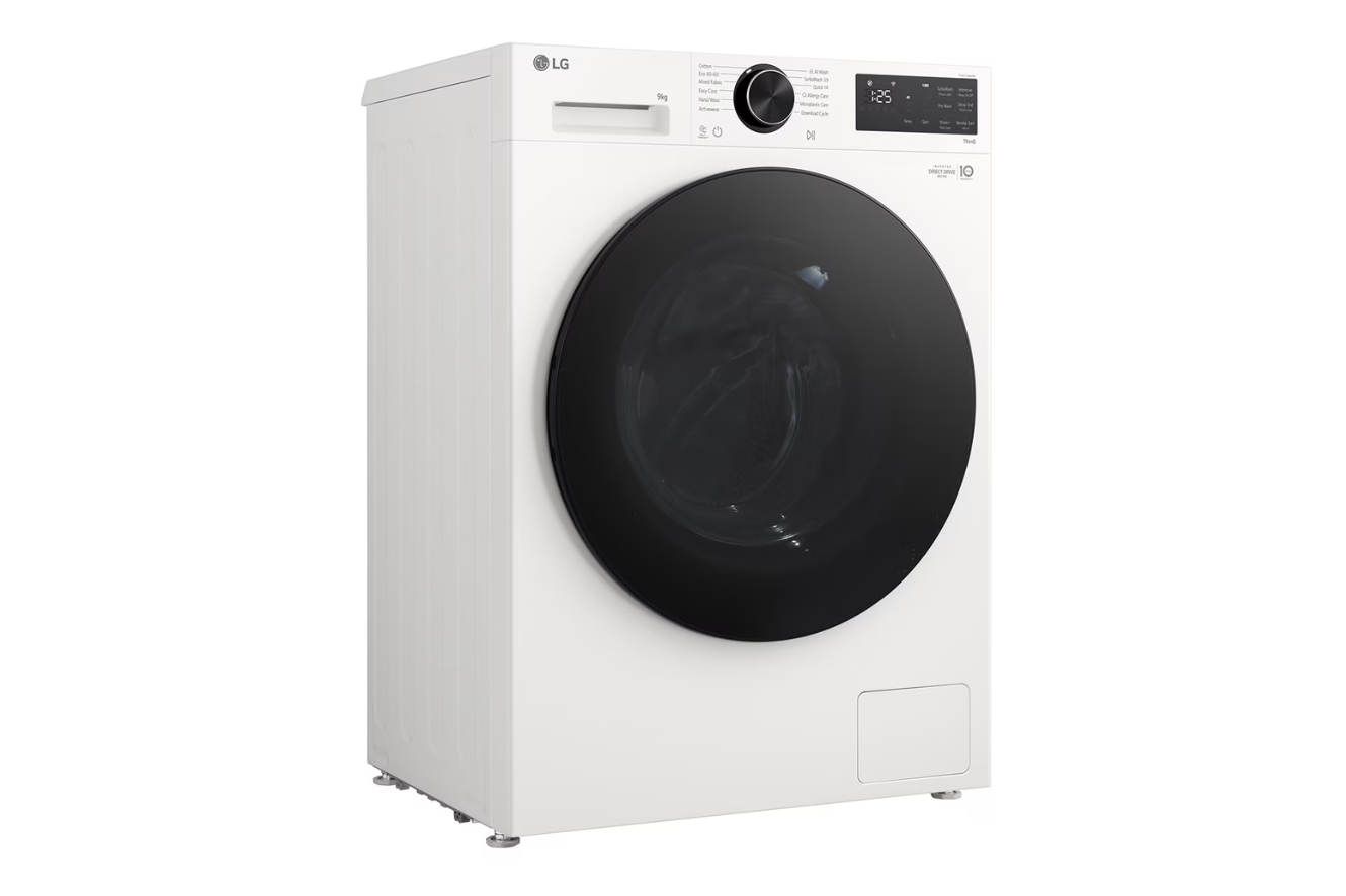 LG Washing machine | F2X50S9TWB | Energy efficiency class A | Front loading | Washing capacity 9 kg | 1200 RPM | Depth 48 cm | Width 60 cm | Display | LED | Steam function | Direct drive | Wi-Fi | White