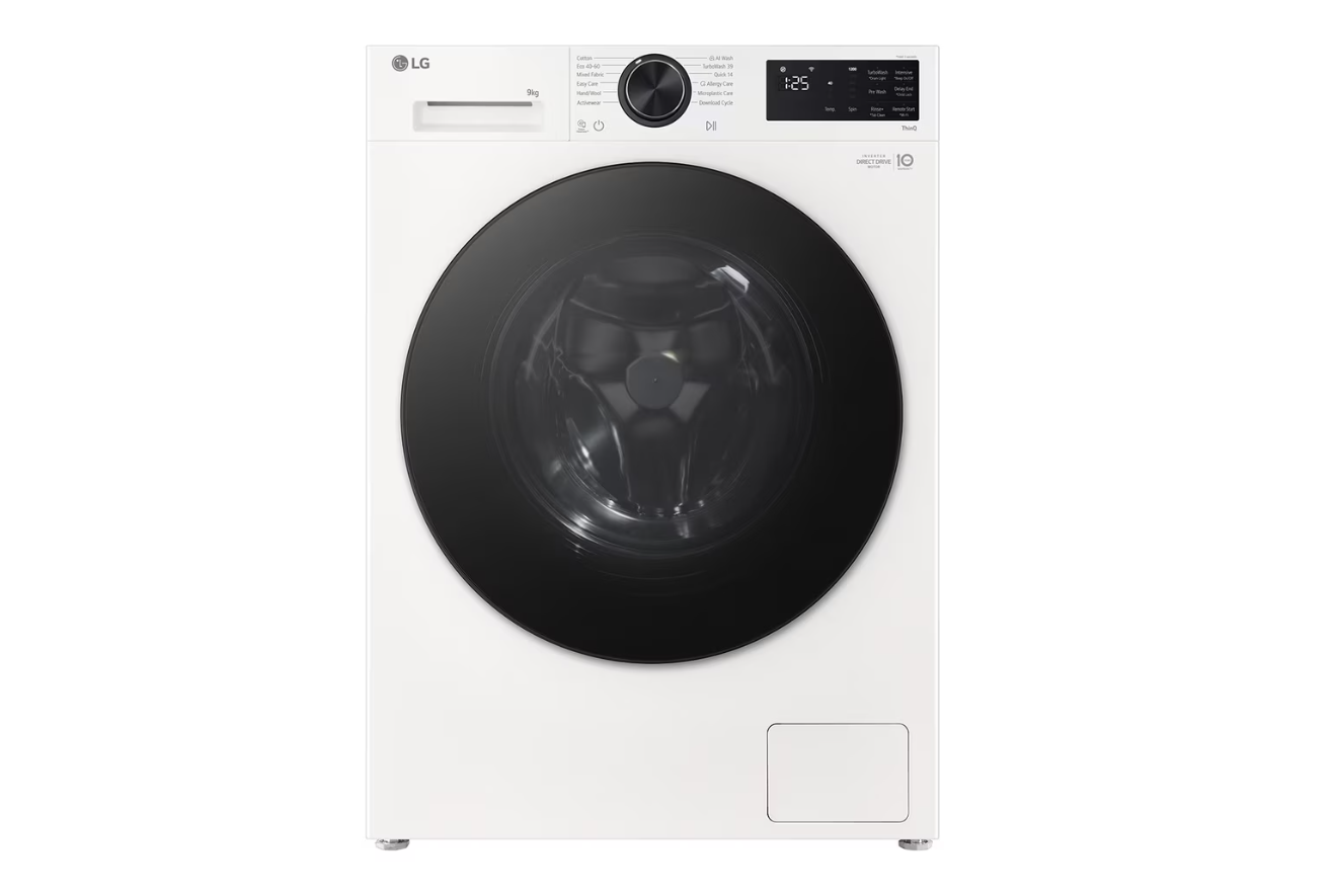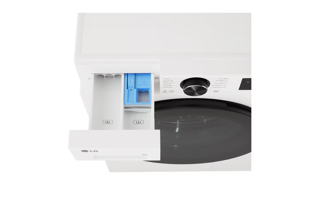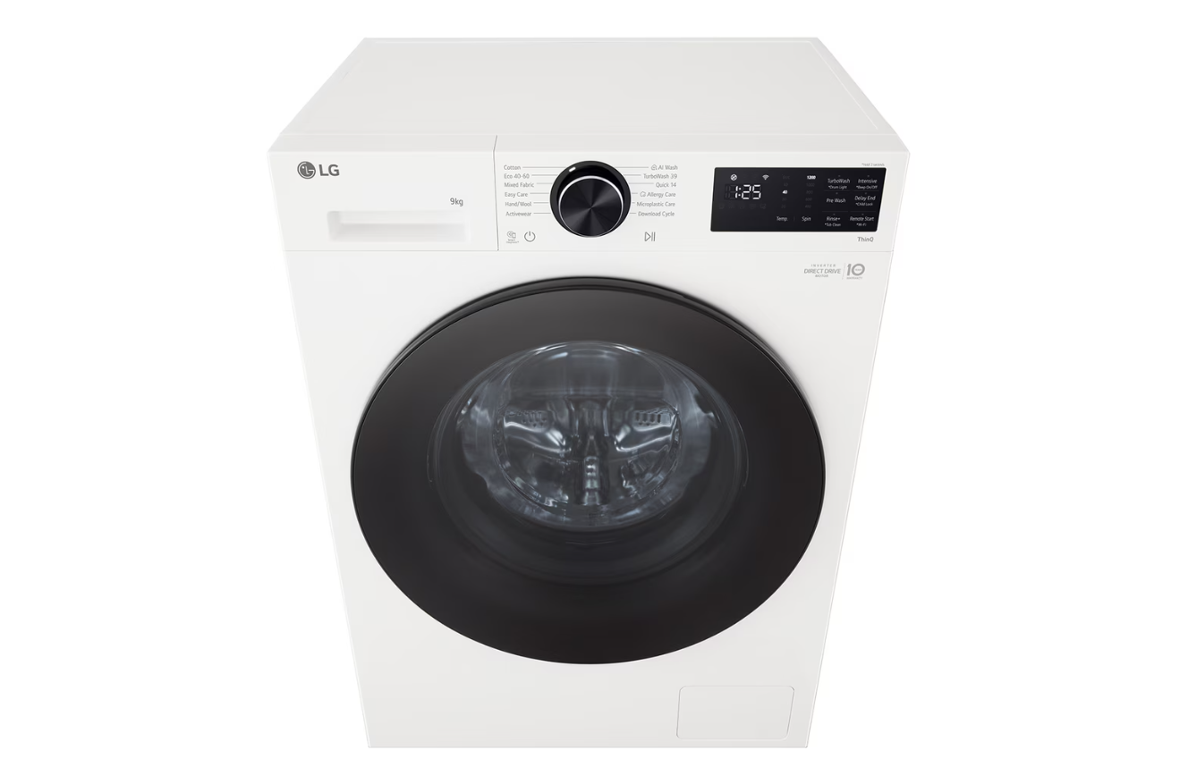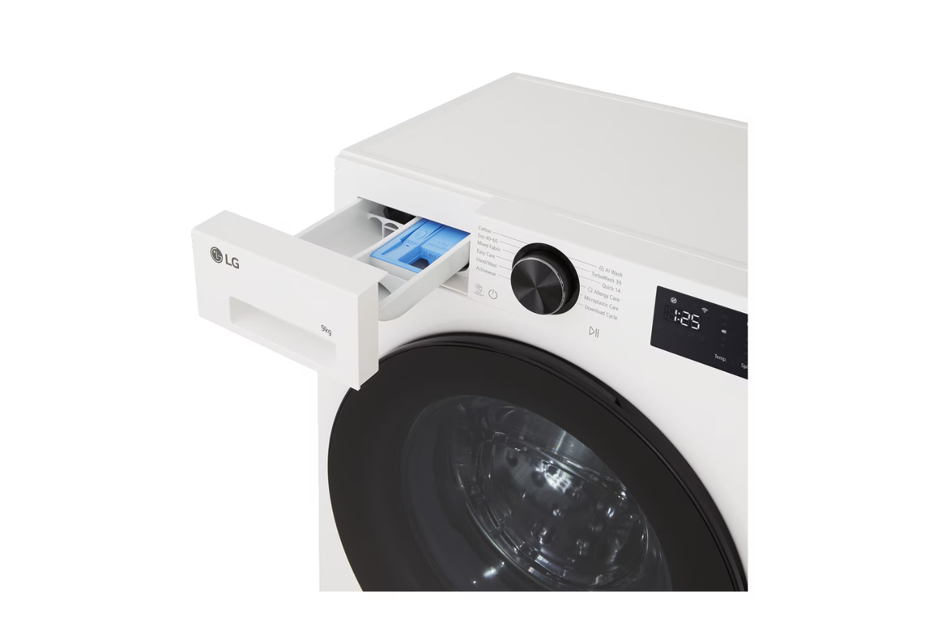 LG Washing machine | F2X50S9TWB | Energy efficiency class A | Front loading | Washing capacity 9 kg | 1200 RPM | Depth 48 cm | Width 60 cm | Display | LED | Steam function | Direct drive | Wi-Fi | White
