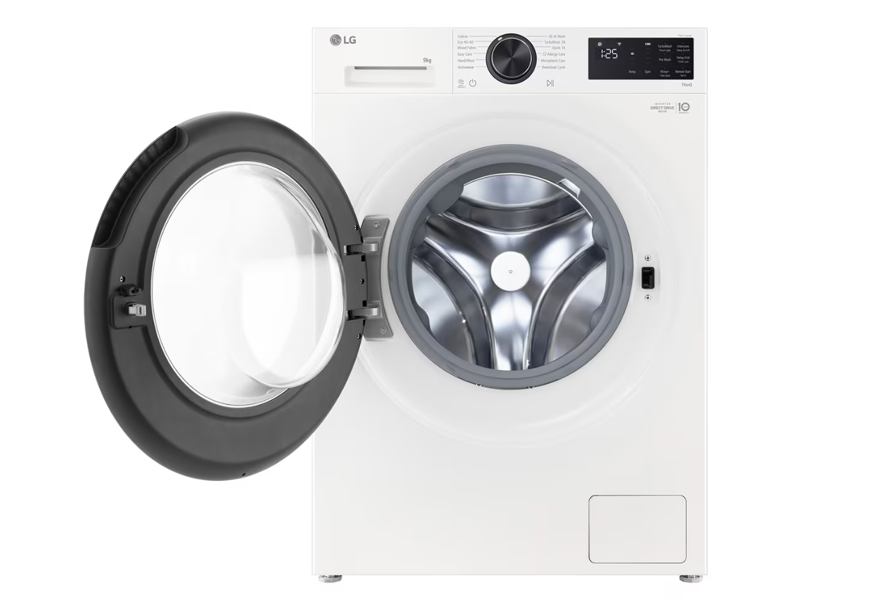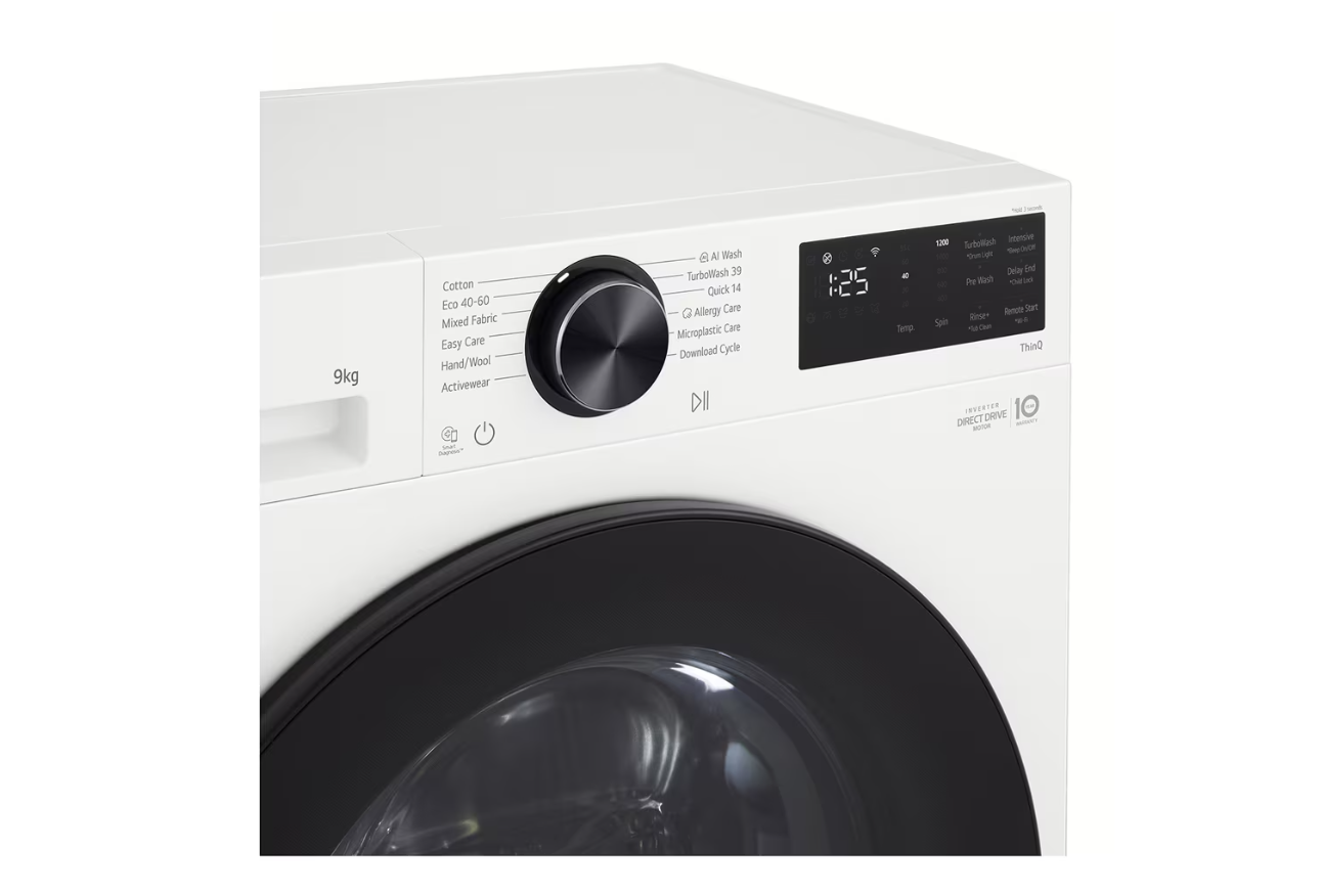 Kitos savybės The AI Wash cycle uses the best motion and stroke depending on the fabric for optimal care; LG AI Direct Drive™ detects load and fabric characteristics to offer 18% more fabric care; LG ThinQ™ Wi-Fi models allow simple control, monitoring and even download of new cycles; LG's Steam™ technology uses powerful sanitizing steam to reduce allergens by up to 99.99%