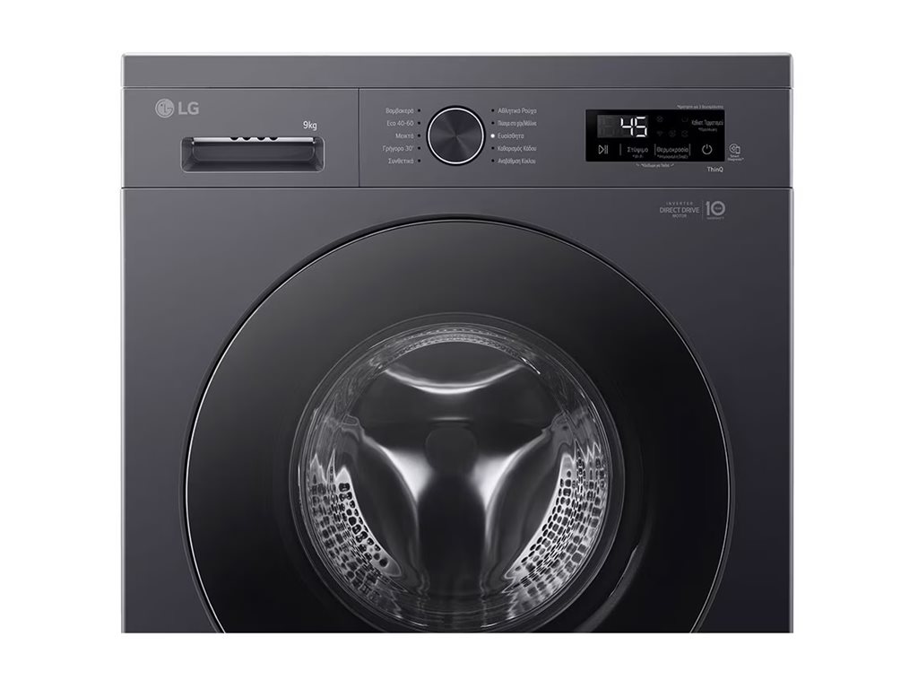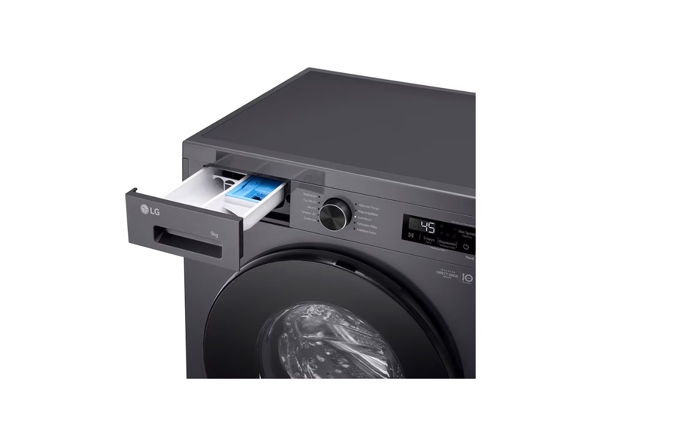 LG Washing machine | F4X1009NMB | Energy efficiency class A | Front loading | Washing capacity 9 kg | 1400 RPM | Depth 55 cm | Width 60 cm | Display | LED | Steam function | Direct drive | Wi-Fi | Graphite Black