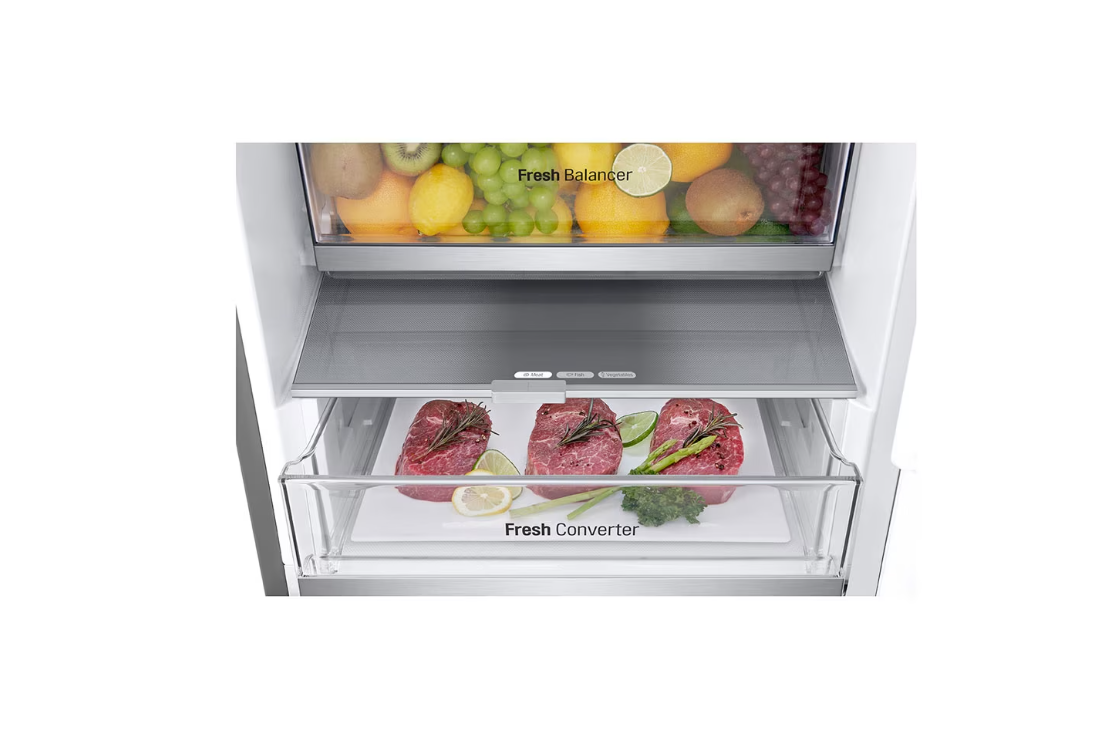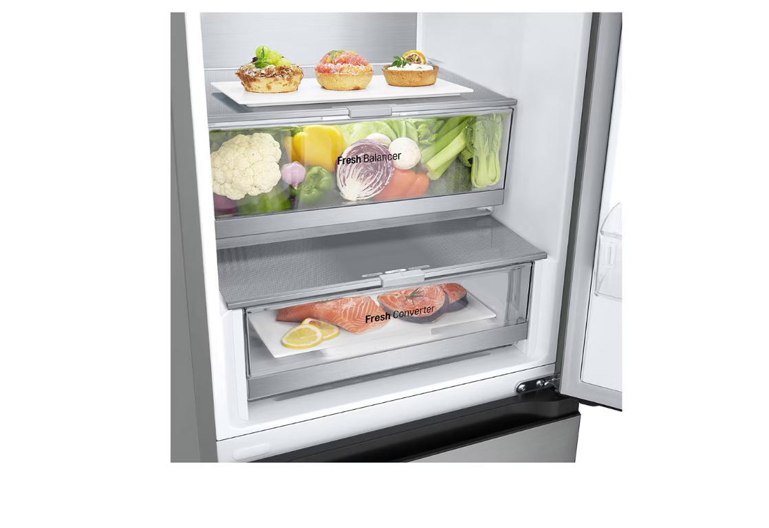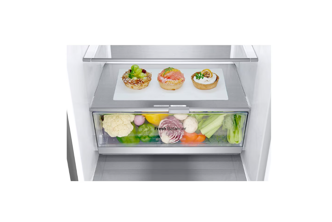 LG šaldytuvas | GBV7170EPY | Energijos vartojimo efektyvumo klasė E | Laisvai pastatomas | Kombinuotas | Aukštis 186 cm | Sistema „No Frost“ | Šaldytuvo grynoji talpa 234 l | Šaldiklio grynoji talpa 110 l | Ekranas | 35 dB | Sidabrinis