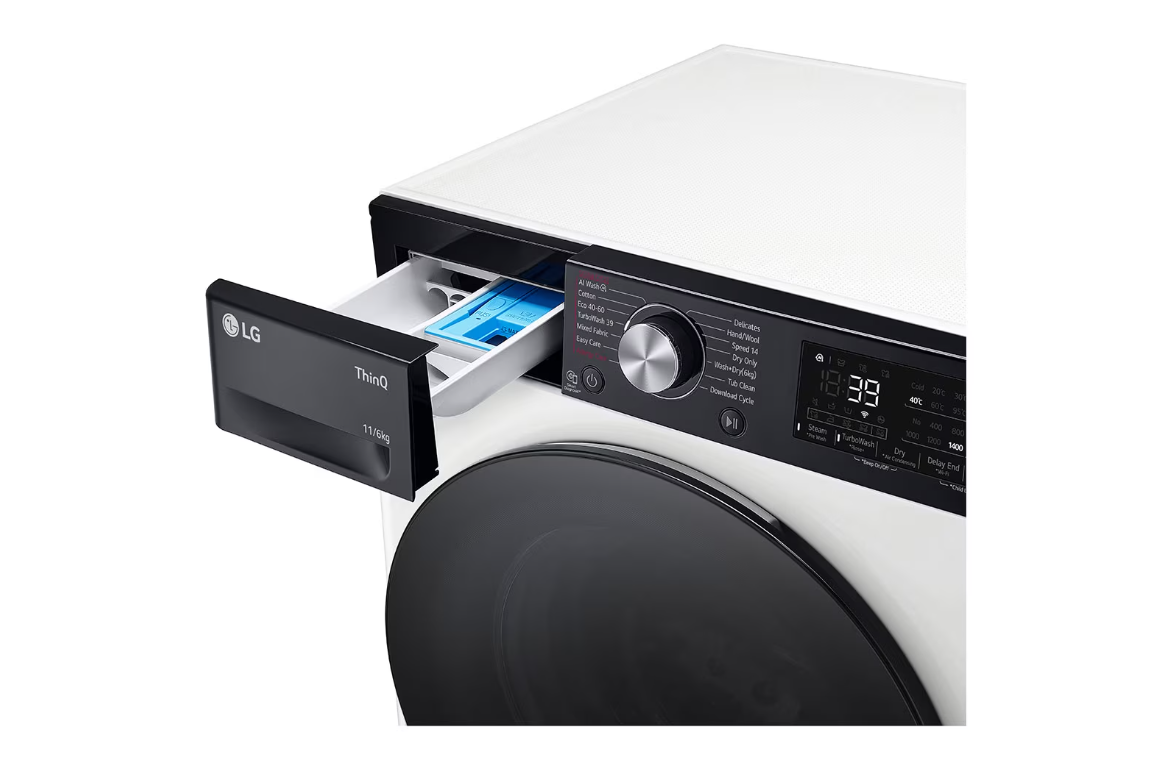 LG | Washing Machine with Dryer | F4DR711S2H | Energy efficiency class A | Front loading | Washing capacity 11 kg | 1400 RPM | Depth 56.5 cm | Width 60 cm | Display | LED | Drying system | Drying capacity 6 kg | Steam function | Direct drive | Wi-Fi | White