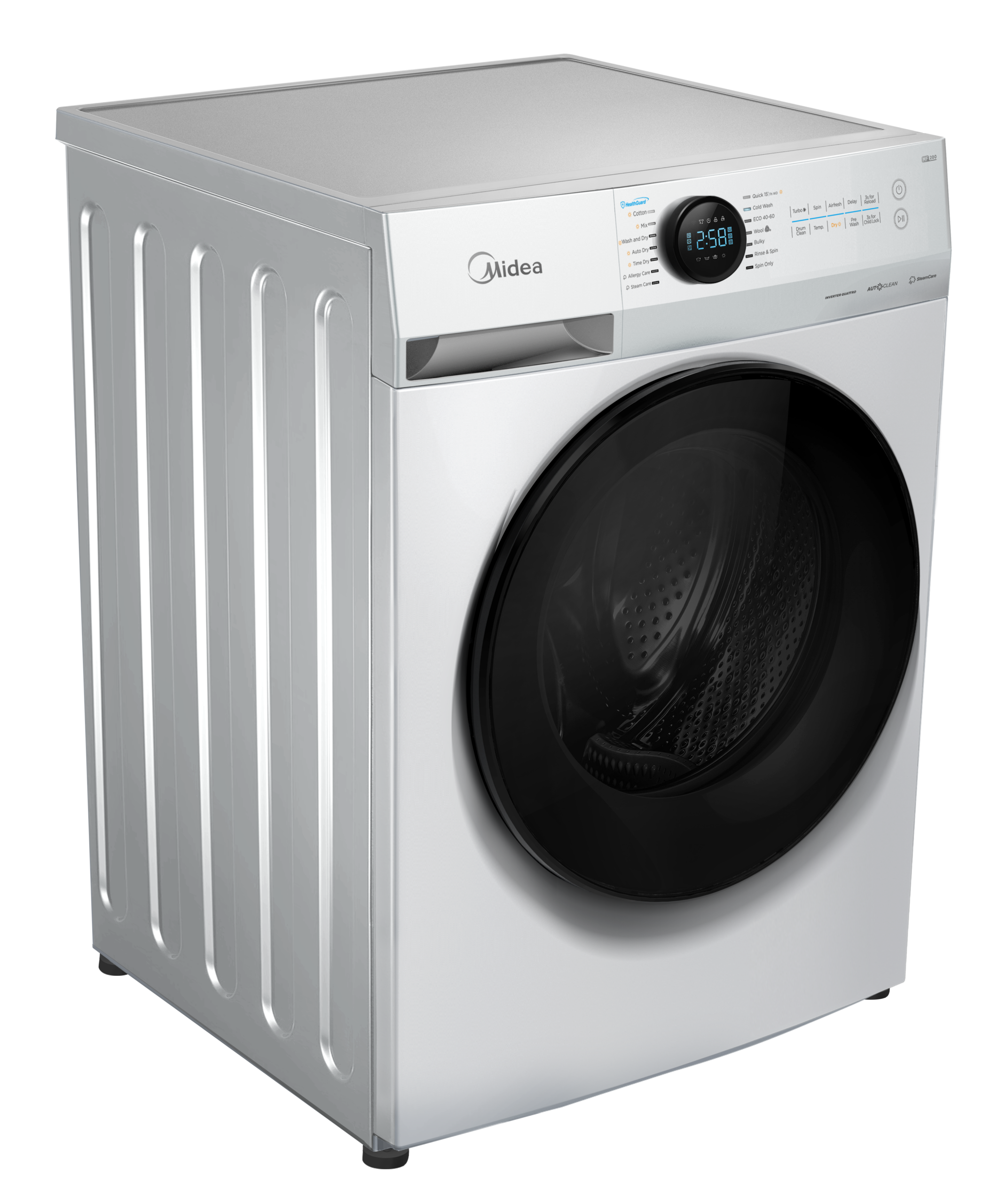 Midea Washing machine with dryer | MF200D80WB/1/W-HR | Energy efficiency class A/D | Front loading | Washing capacity 8 kg | 1400 RPM | Depth 48 cm | Width 60 cm | Display | LED | Drying system | Drying capacity 6 kg | Steam function | White