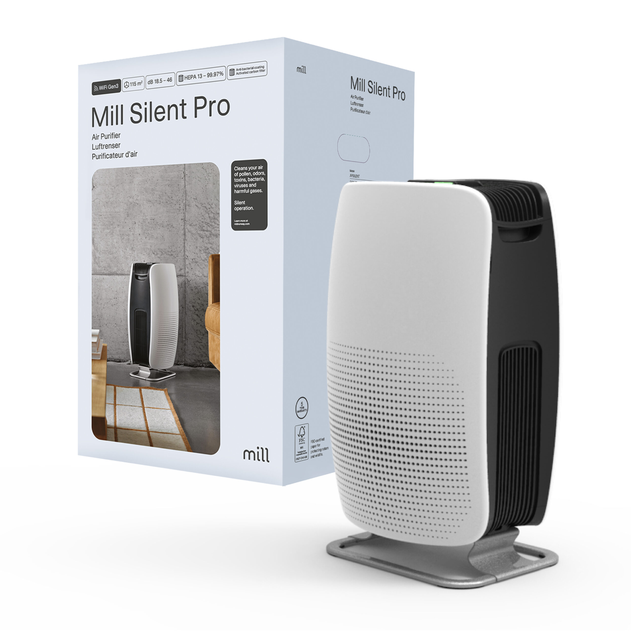 Mill | Silent Pro Air Purifier | APSILENT | Suitable for rooms up to 115 m² | 68.3 m³ | White/Black