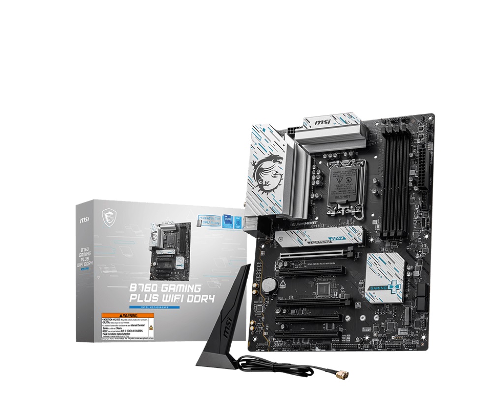 MSI B760 GAMING PLUS WIFI DDR4 | Processor family Intel | Processor socket LGA1700 | DDR4 | Supported hard disk drive interfaces SATA, M.2 | Number of SATA connectors 4