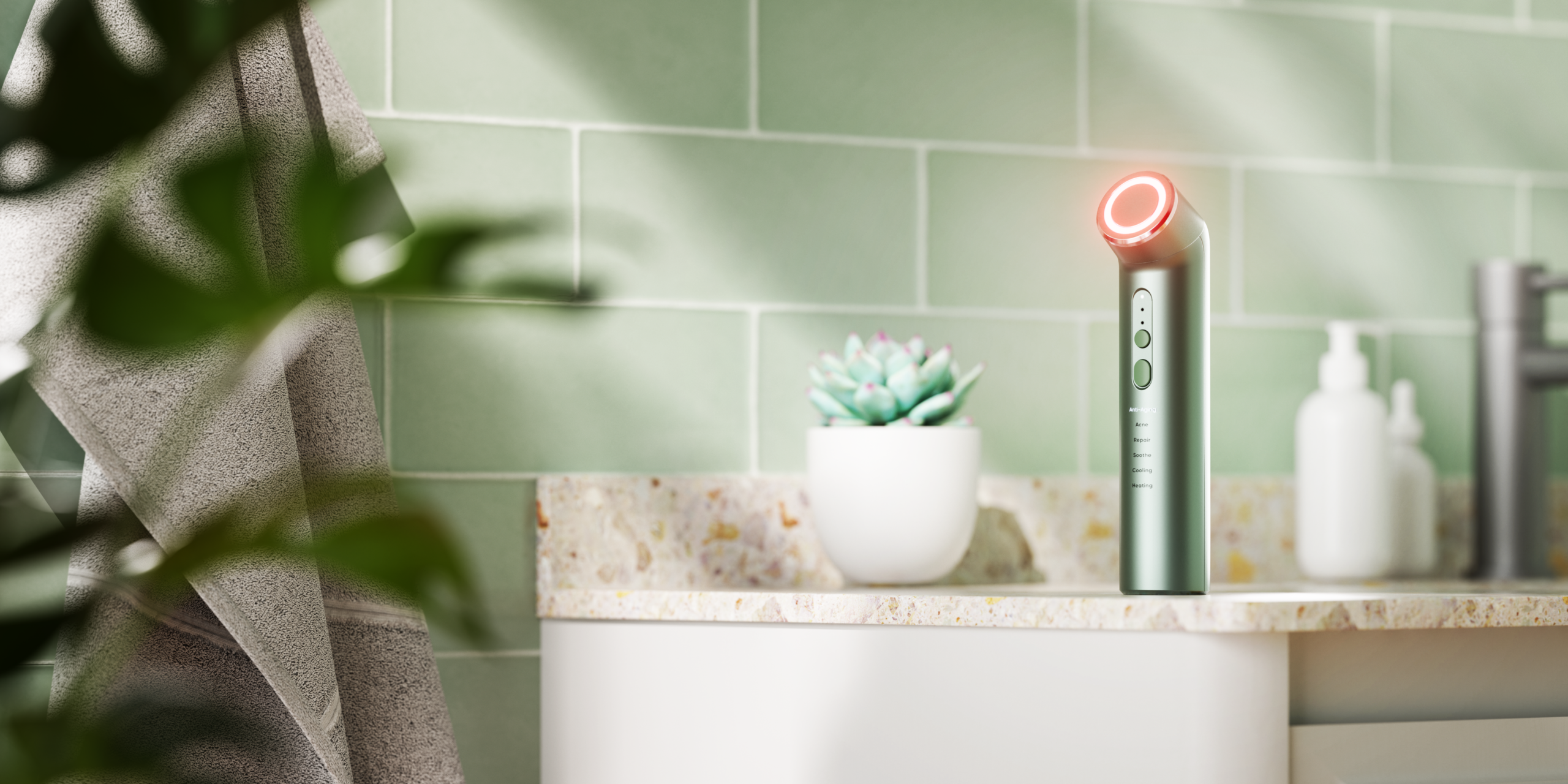 | Kitos savybės | Number of LEDs: 12 LEDs; Treatment Modes: 6 in Total: Anti-Aging, Acne, Repair, Soothe, Cooling, Heating; Treatment Duration: 4 minutes per mode; Recommended Usage Duration: 3 - 5 times a week |