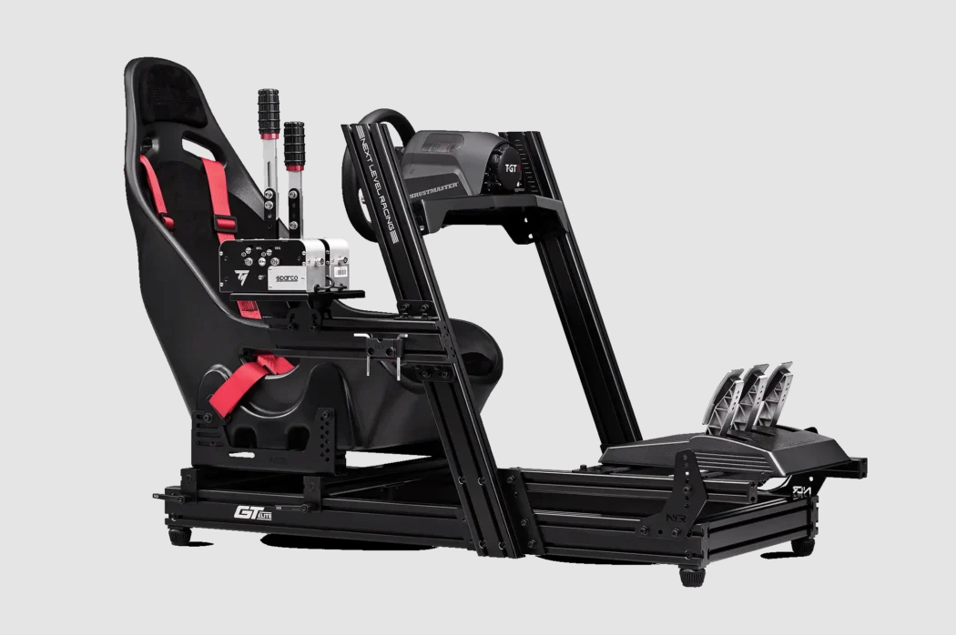 | Kitos savybės | All the extras included such as NLR flex free seat slider system, height adjustable shock absorption feet, Buttkicker® Gamer 2 Adapter, cable management clips, and tool kit holder. Pre-machined holes in aluminum profile for rigidity and ease of assembly. |
