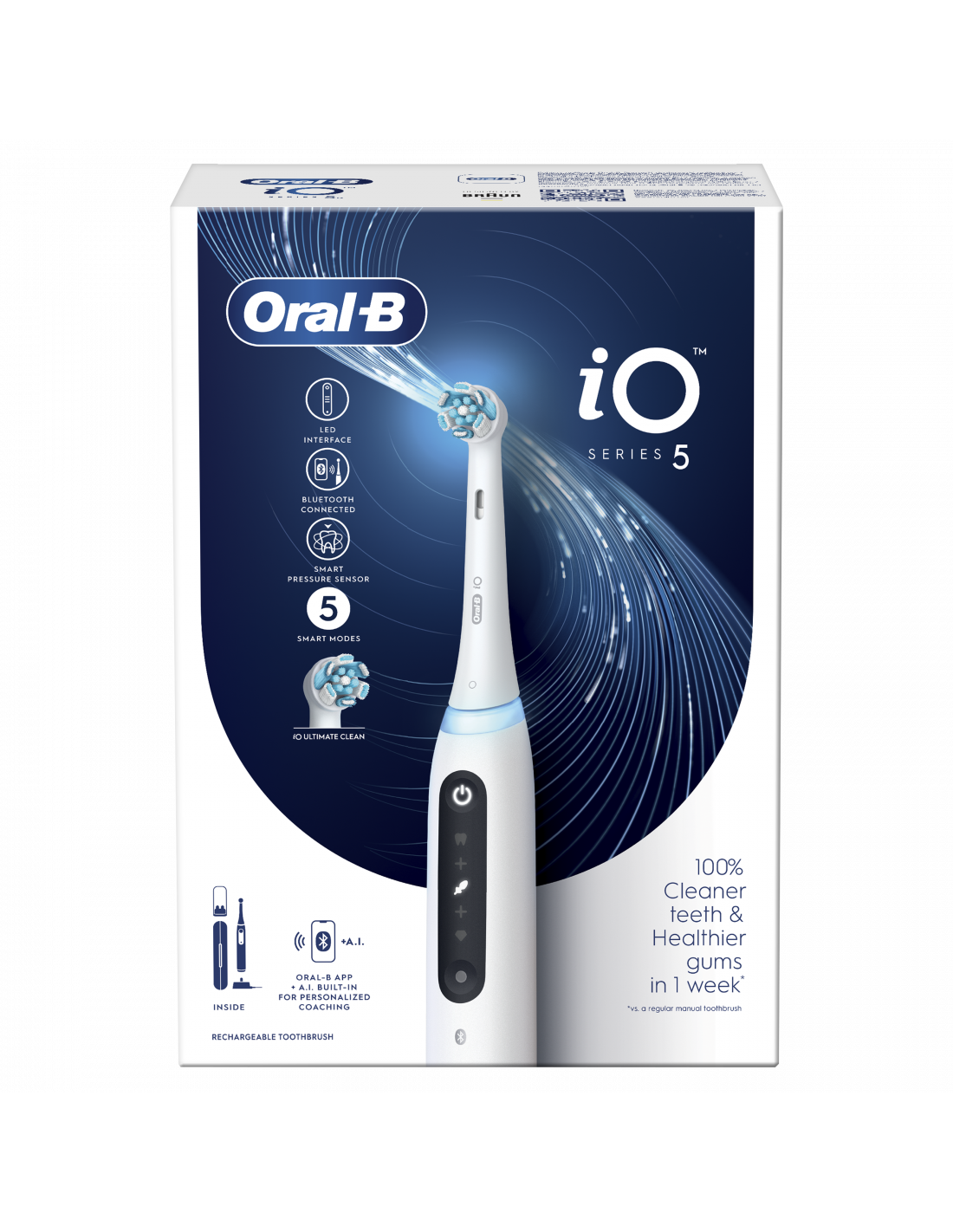Oral-B | Electric Toothbrush | iO5 | Rechargeable | For adults | Number of brush heads included 1 | Number of teeth brushing modes 5 | Quite White
