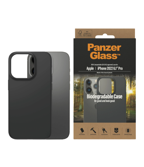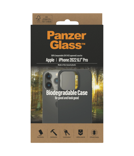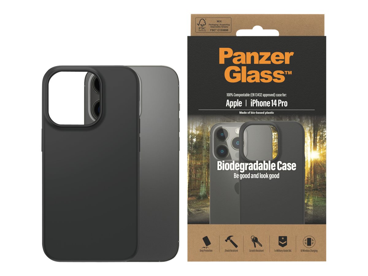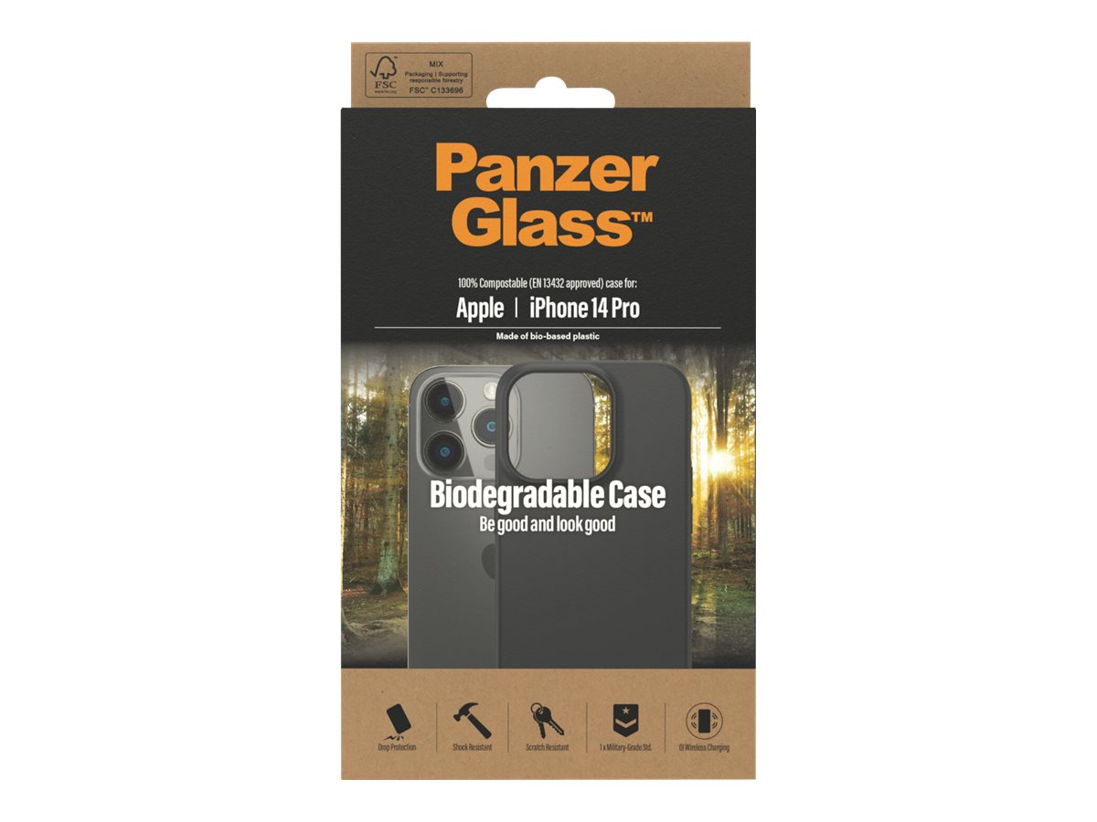 PanzerGlass | Biodegradable Case | Back protection | Apple | iPhone 14 Pro | Bio-based plastic | Black | Wireless charging compatible; Military Grade Standard; 100% compostable