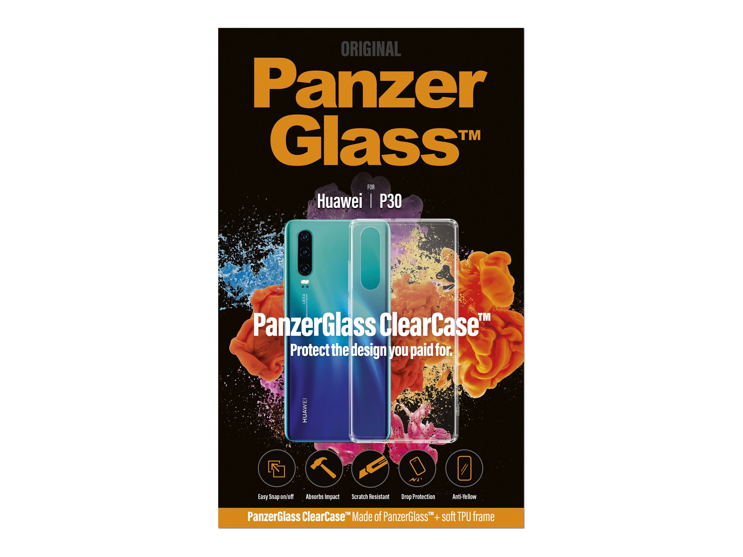 PanzerGlass | ClearCase | 0198 | Back cover | Huawei | Huawei P30 | Plastic | Transparent | Anti-yellow coating, Glass do not turn yellow. Fits right over the buttons for easy use. Full access to all functions. Effective wireless charging. Thin. TPU frame gives extra grip. | Back cover