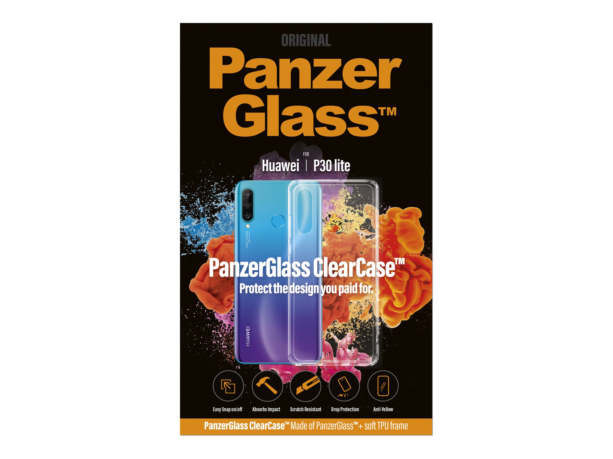 PanzerGlass | ClearCase | 0199 | Back cover | Huawei | Huawei P30 lite | Plastic | Transparent | Anti-yellow coating, Glass do not turn yellow. Fits right over the buttons for easy use. Full access to all functions. Effective wireless charging. Thin. TPU frame gives extra grip. | Back cover