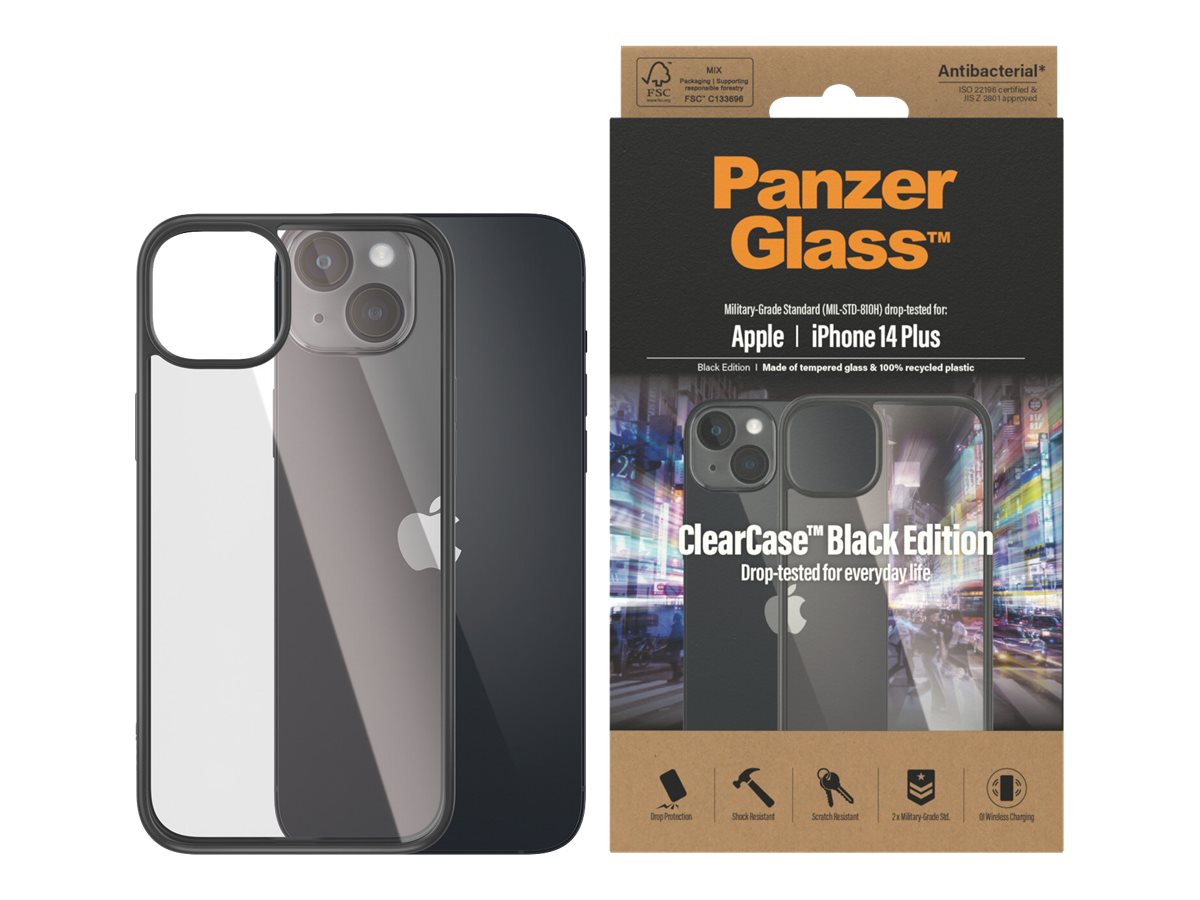 PanzerGlass | ClearCase with Black Frame | Case | Apple | iPhone 14 Plus | Black | Military grade standard; Scratch resistant; Shock resistant; Antibacterial; 100% recycled frame material