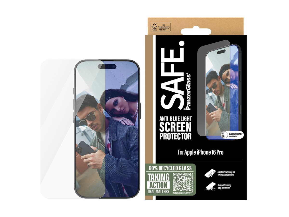 PanzerGlass SAFE by PanzerGlass EyeCare | Screen protector | Apple | iPhone 16 Pro | Glass | Transparent | Ultra-Wide Fit