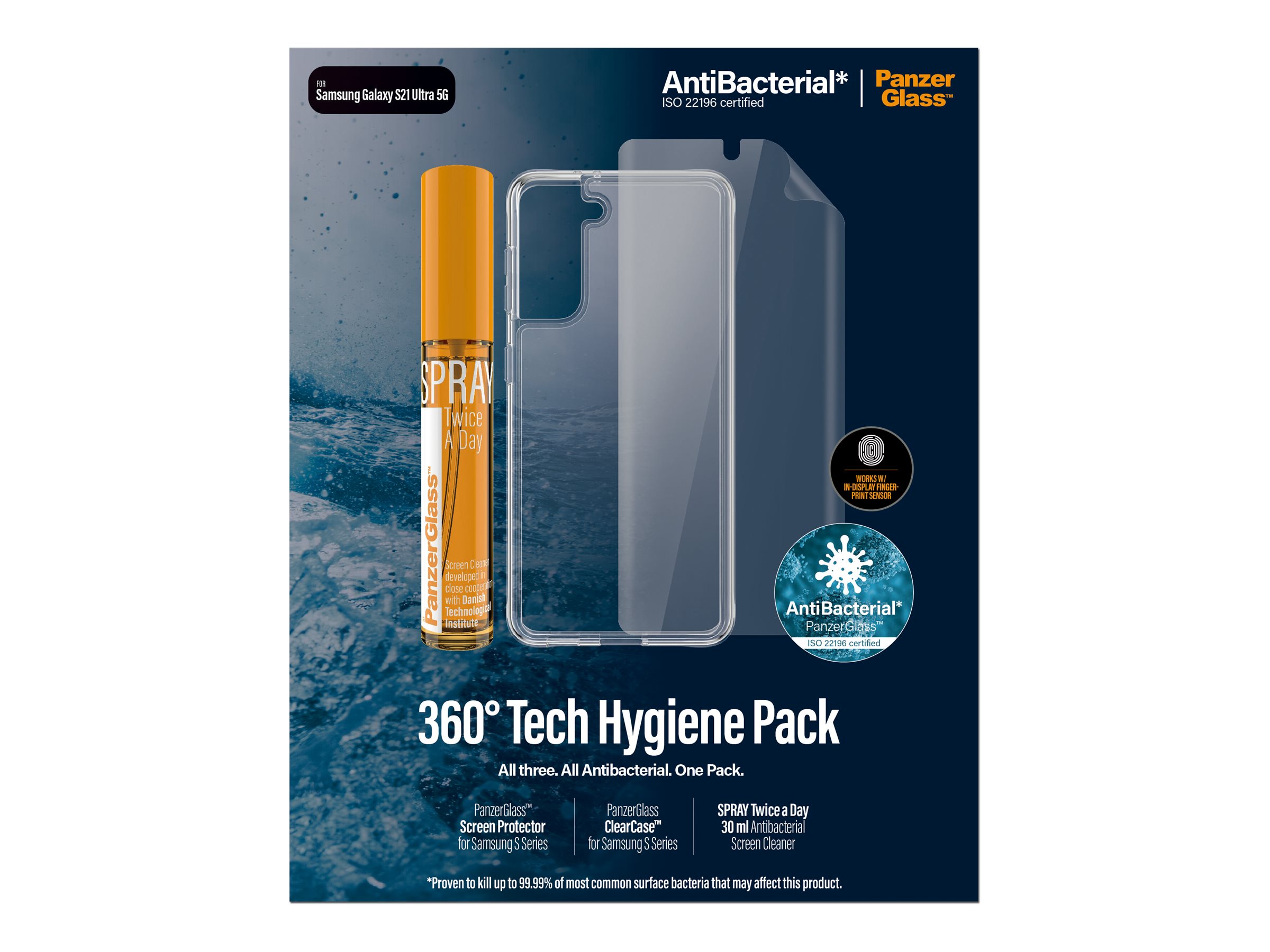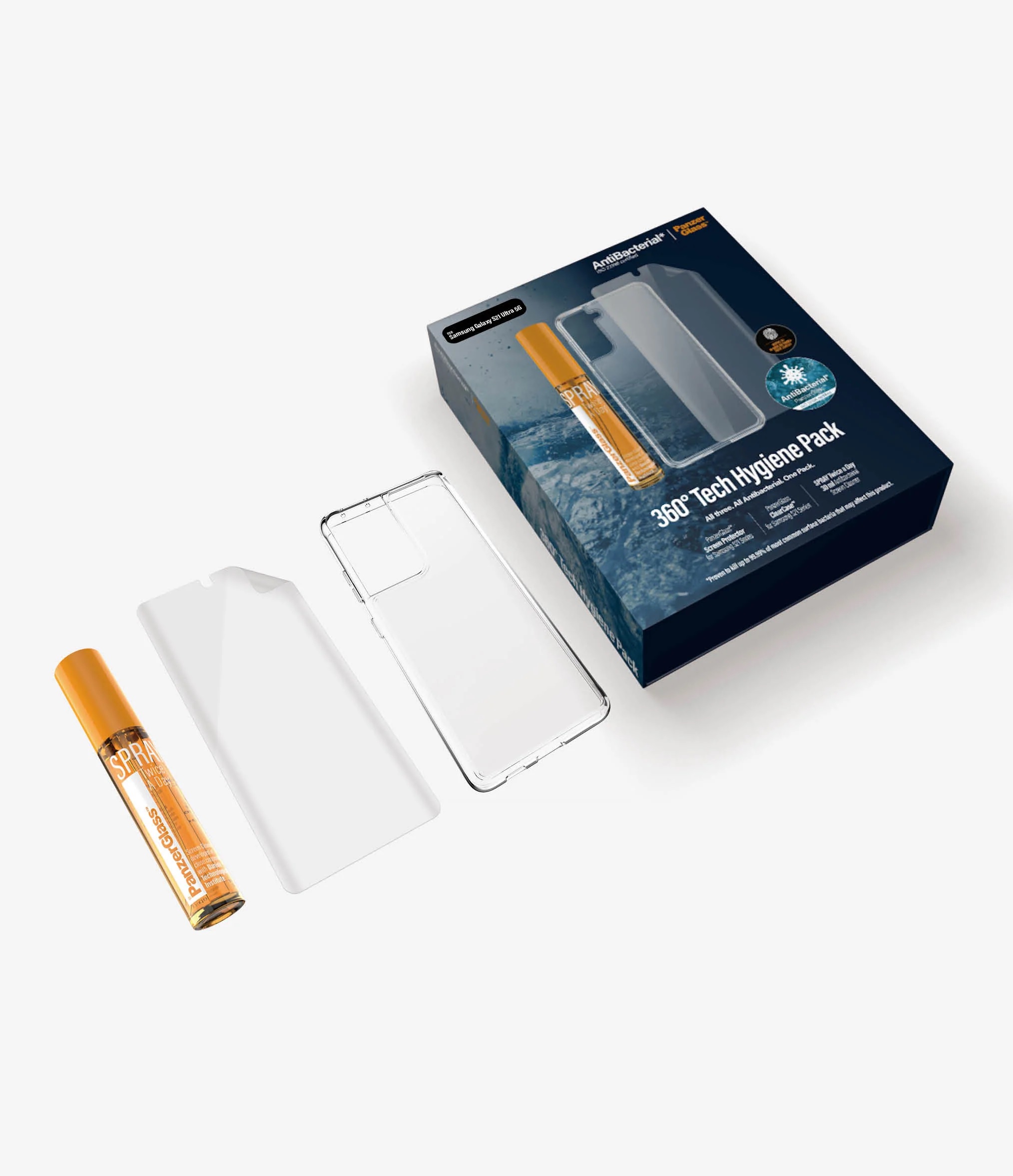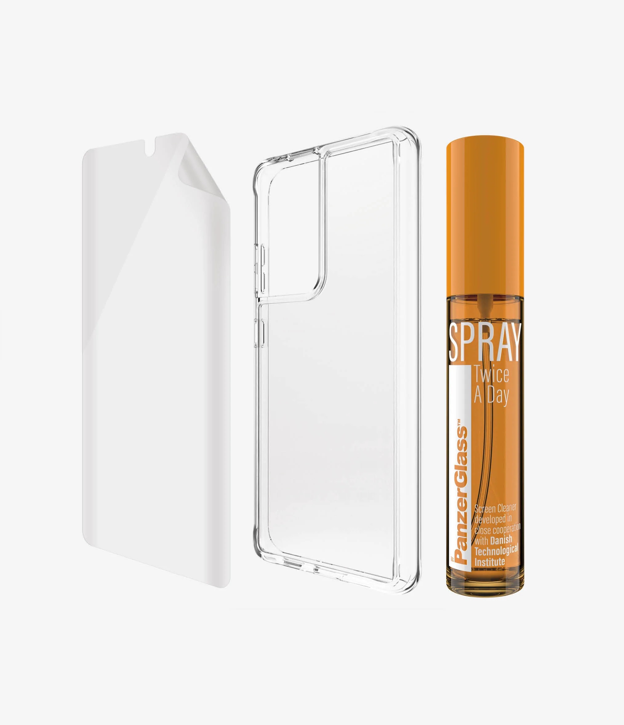 | Package content | PanzerGlass screen protection in flexible TPU material, a clear TPU case cover and SPRAY Twice A Day 30 ml, which gives the phone full protection |